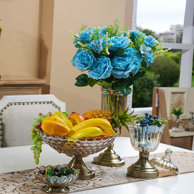 欧式水果盘客厅茶几三件套水晶玻璃果盘干果盘家居花瓶装饰品