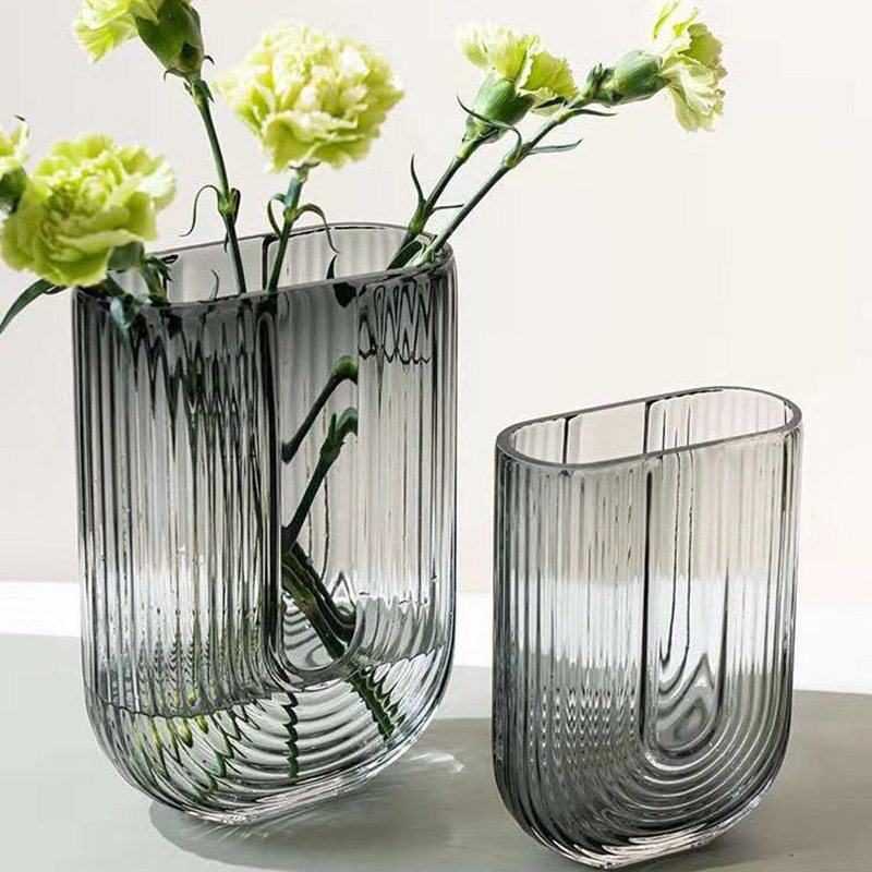 轻奢特大号不规则花瓶 手工透明玻璃花器客厅插花日本吊钟马醉木