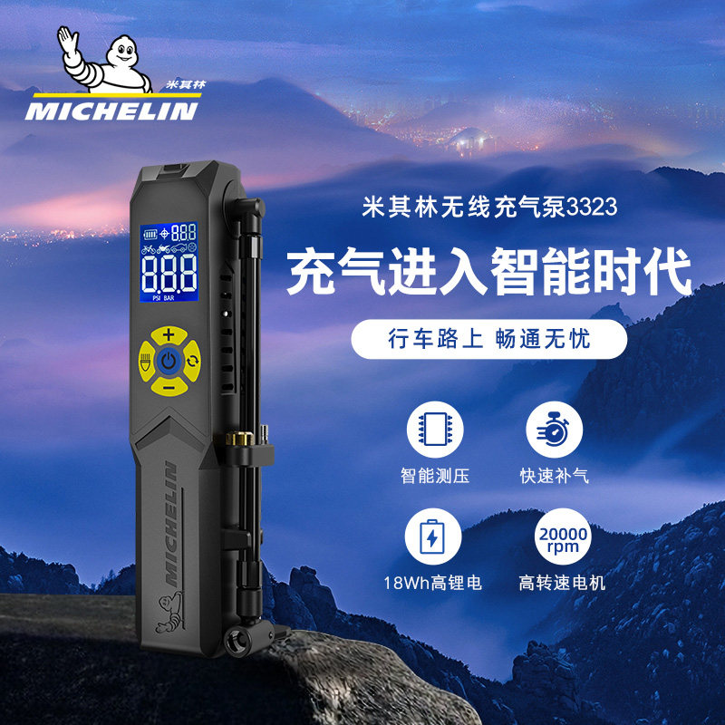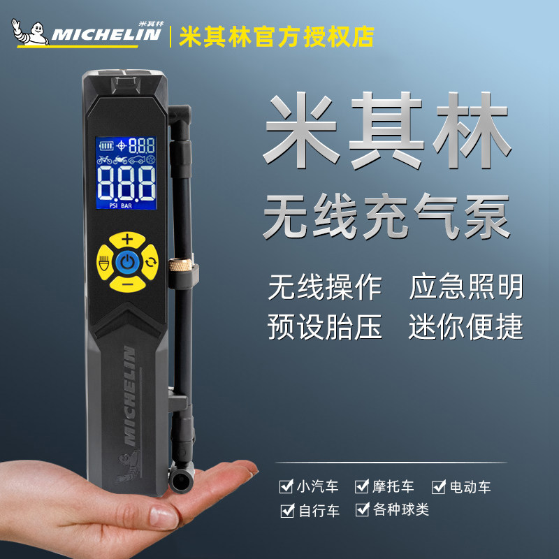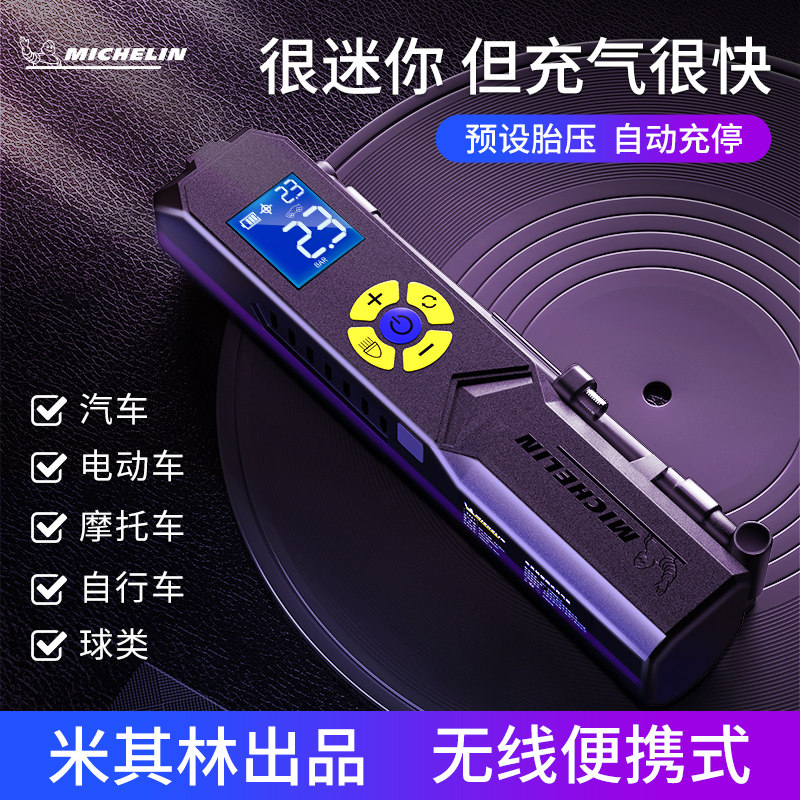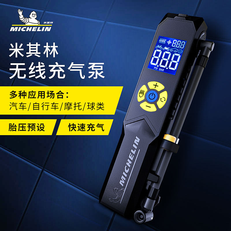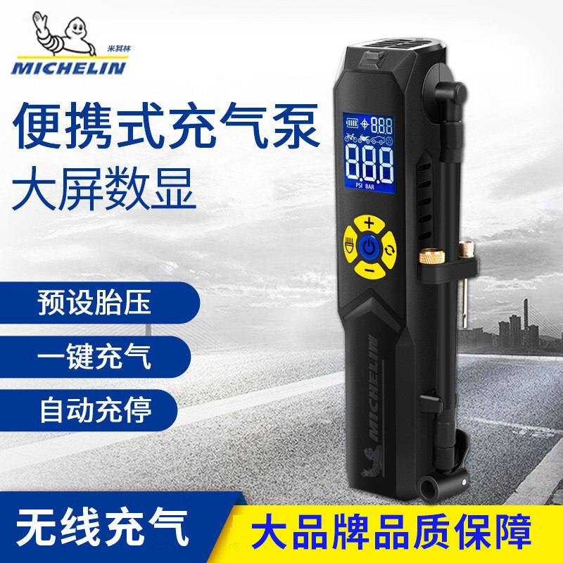 米其林车载充气泵汽车打气泵车用无线便携自行车电动车轮胎打气筒