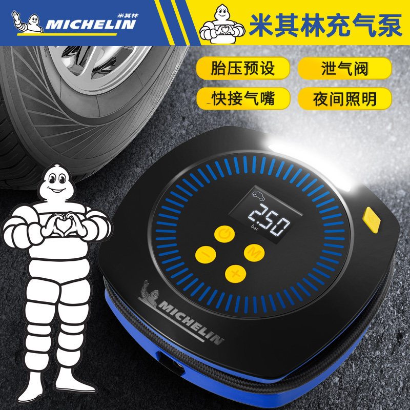 米其林汽车打气泵便携式车用充气泵小轿车打气筒车载轮胎冲气加气
