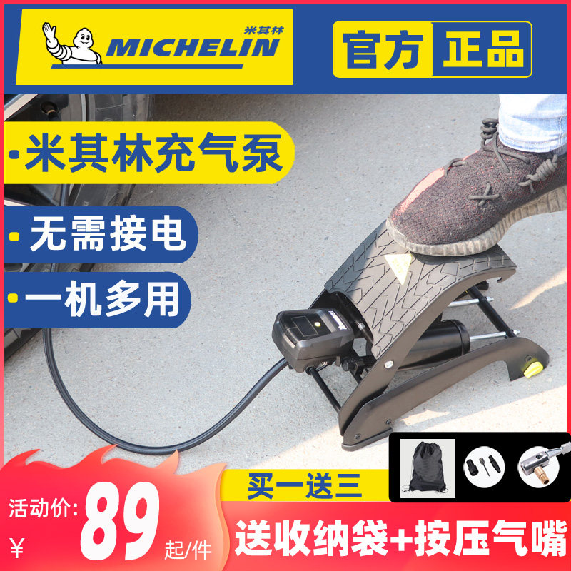 米其林车载充气泵汽车摩托车双缸脚踏轮胎脚踩无线便携式打气筒