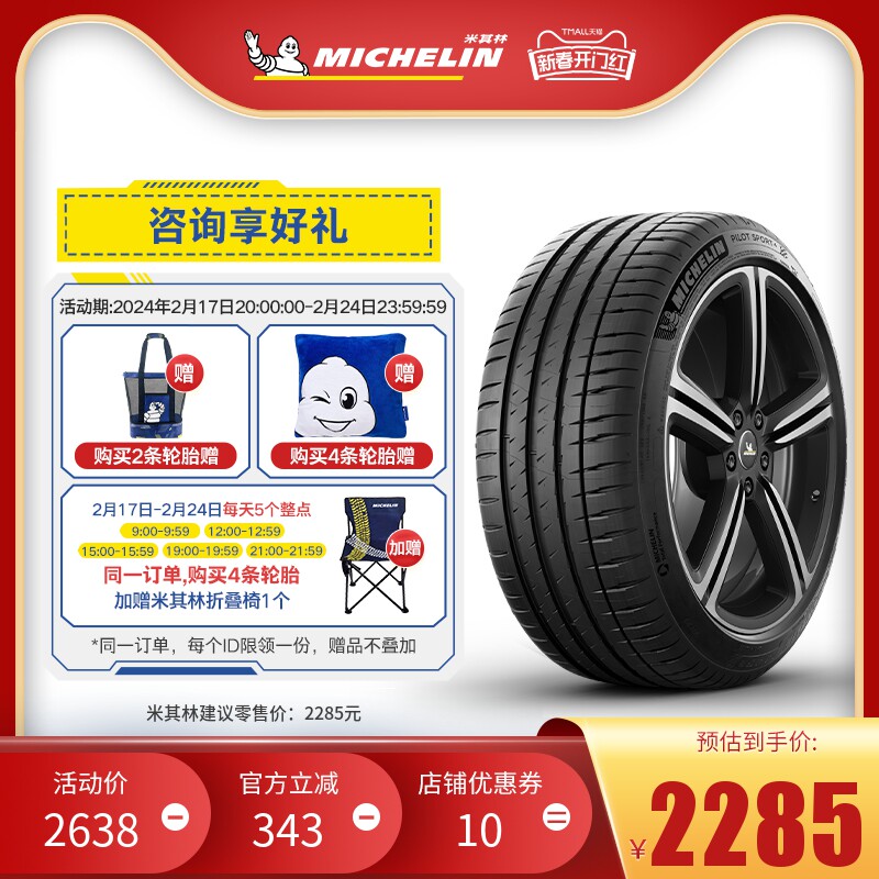 米其林防爆轮胎 PILOT SPORT 4 竞驰4 275/35ZR20 102Y ZP 包安装