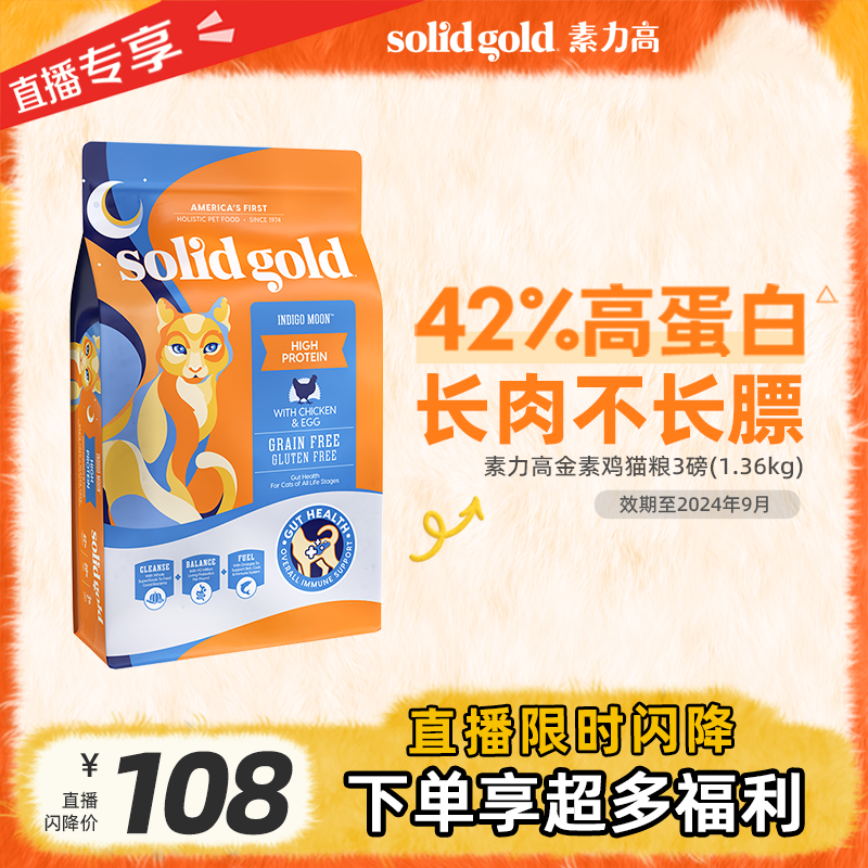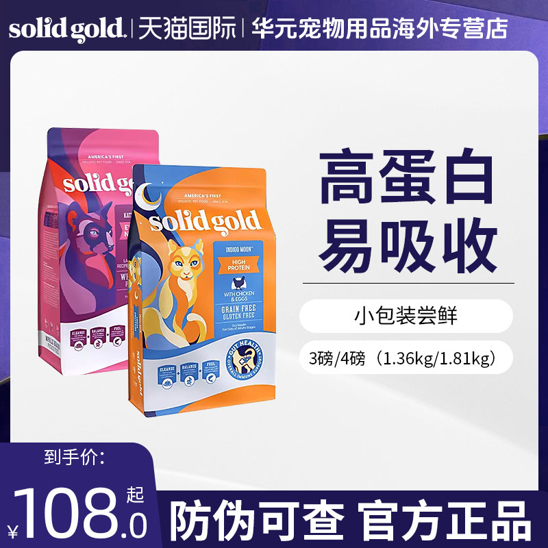 SolidGold素力高猫粮全价金素3磅金装试吃鸡肉味每日营养羊肉4磅
