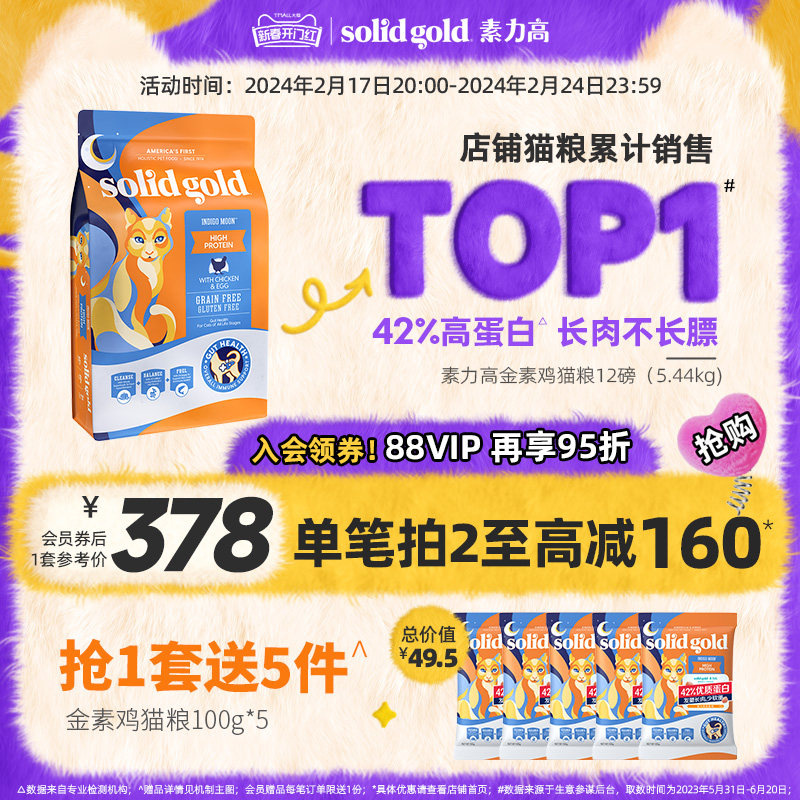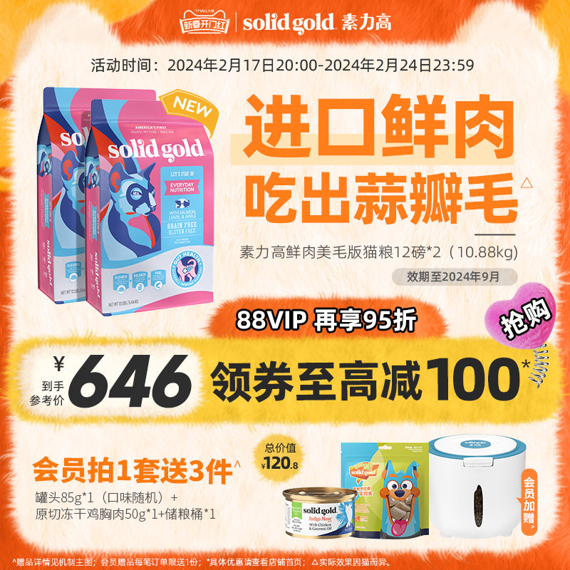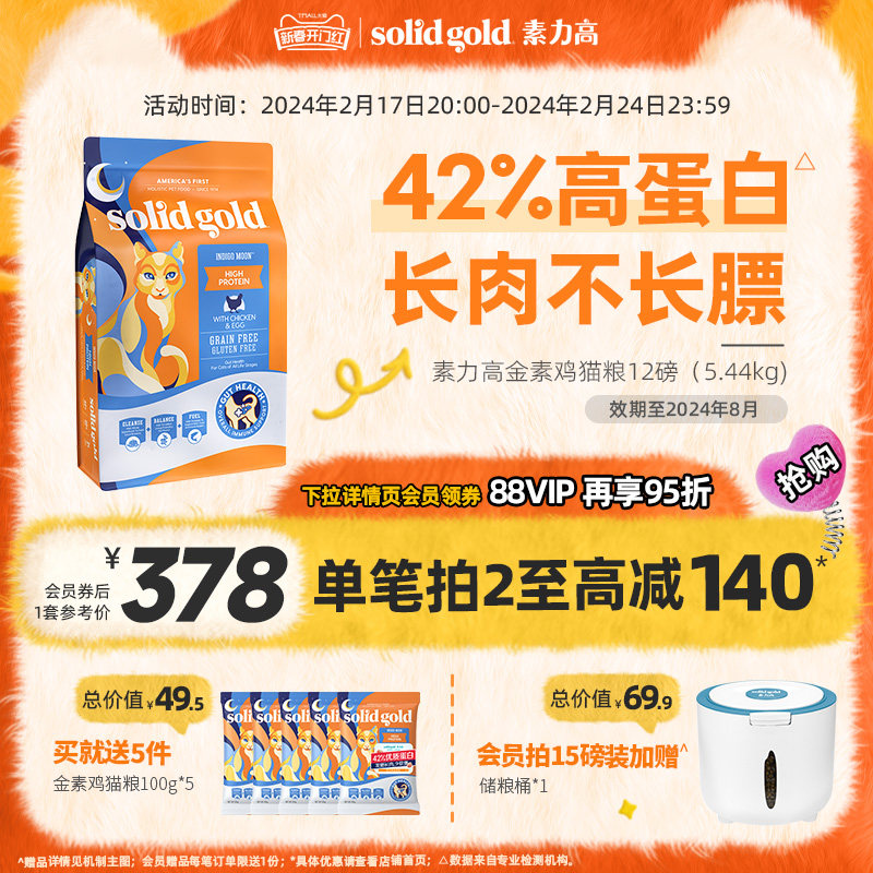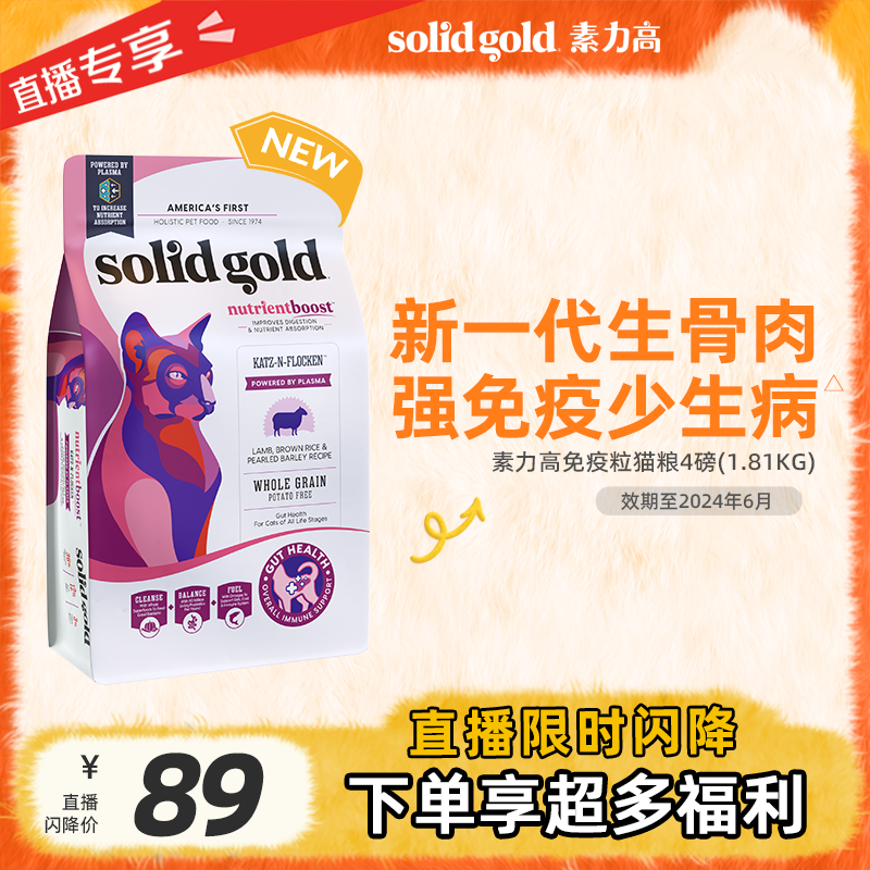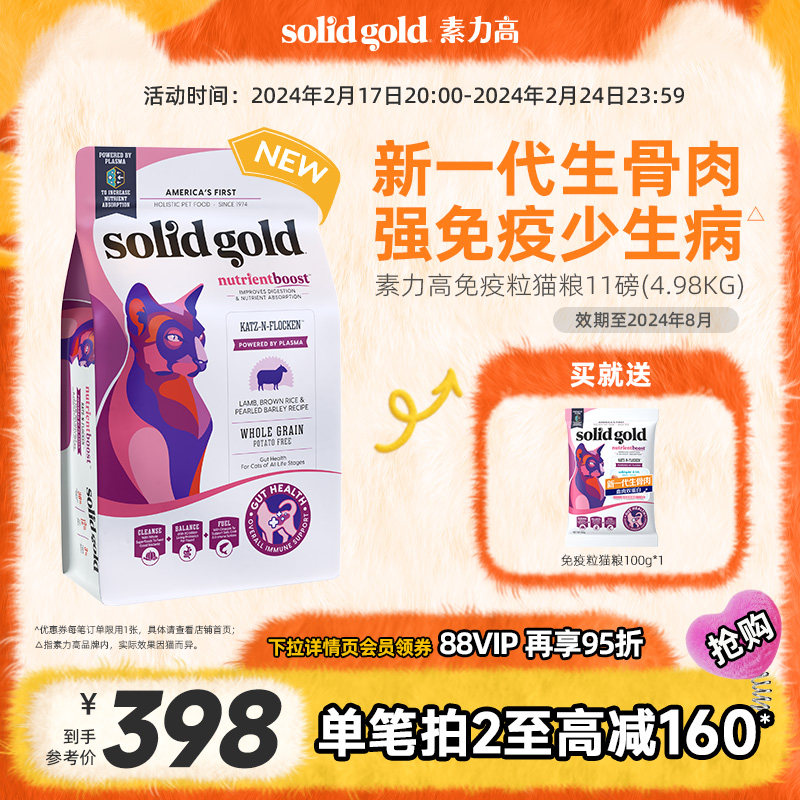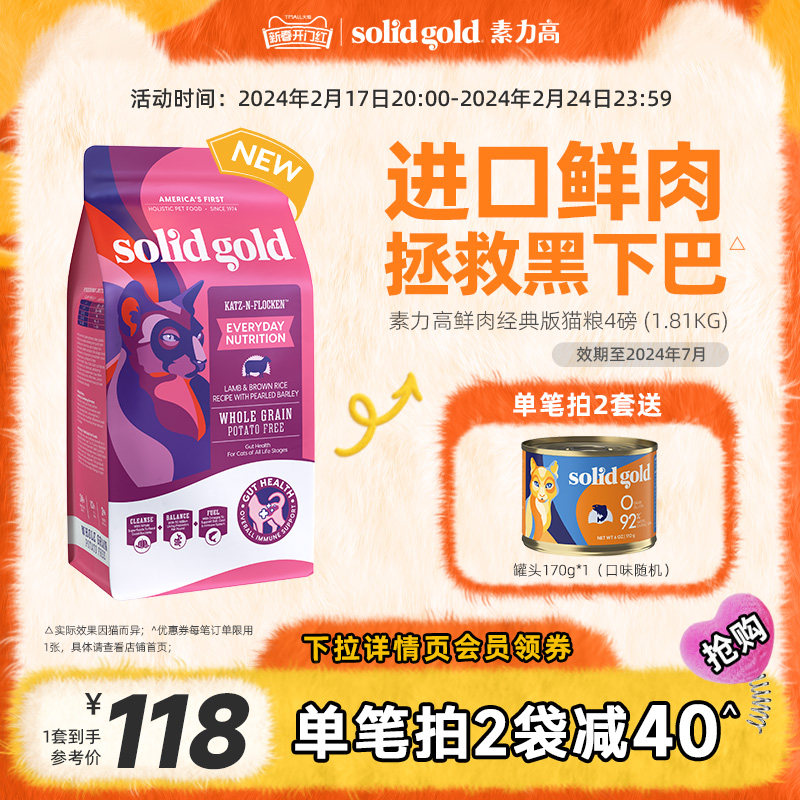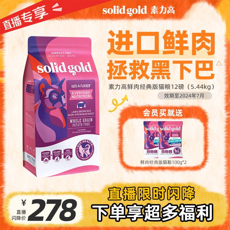 素力高猫粮进口成幼猫金装SolidGold旗舰店每日营养金素猫粮临期