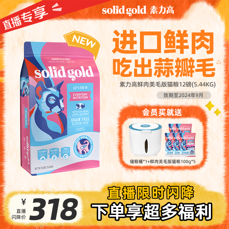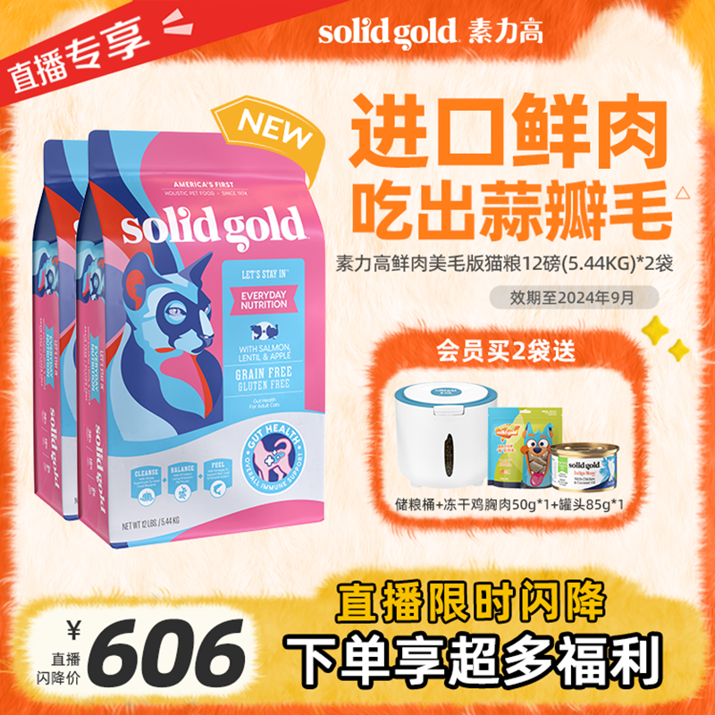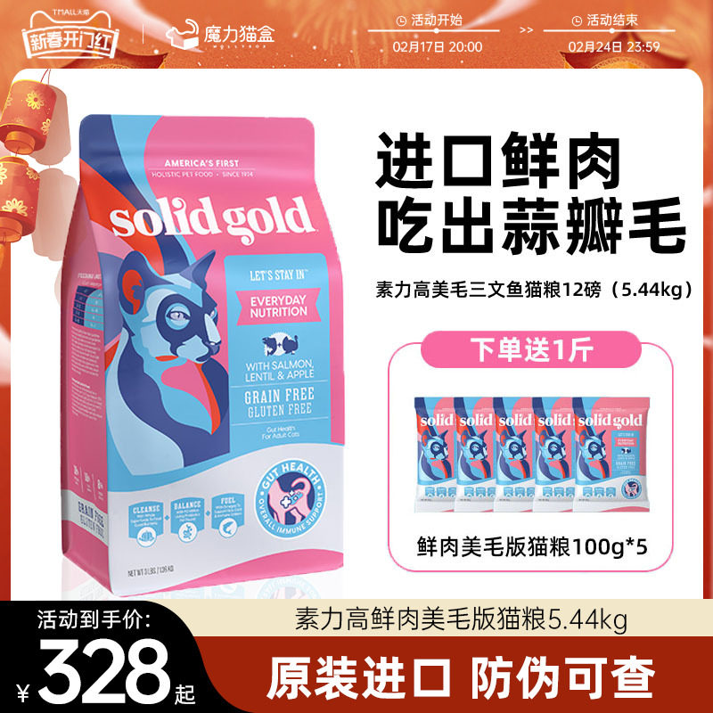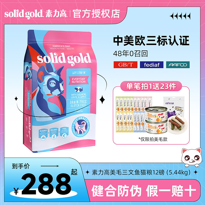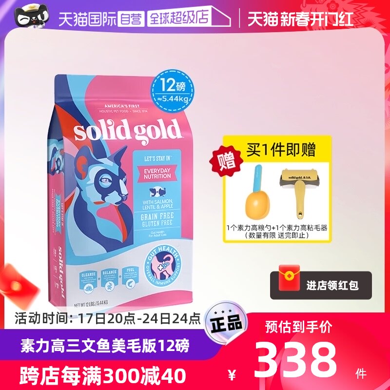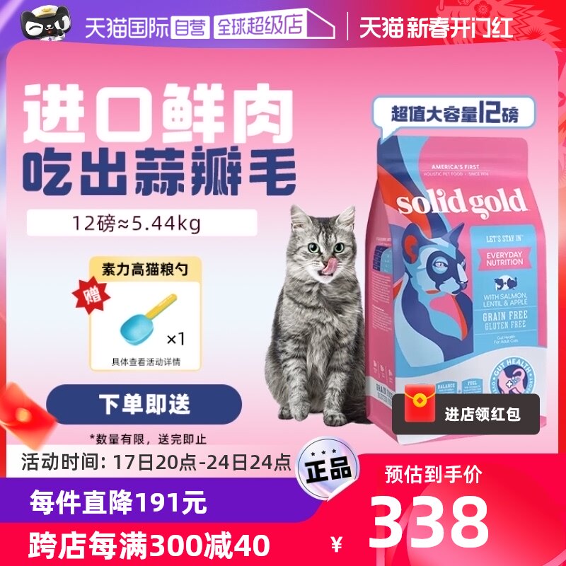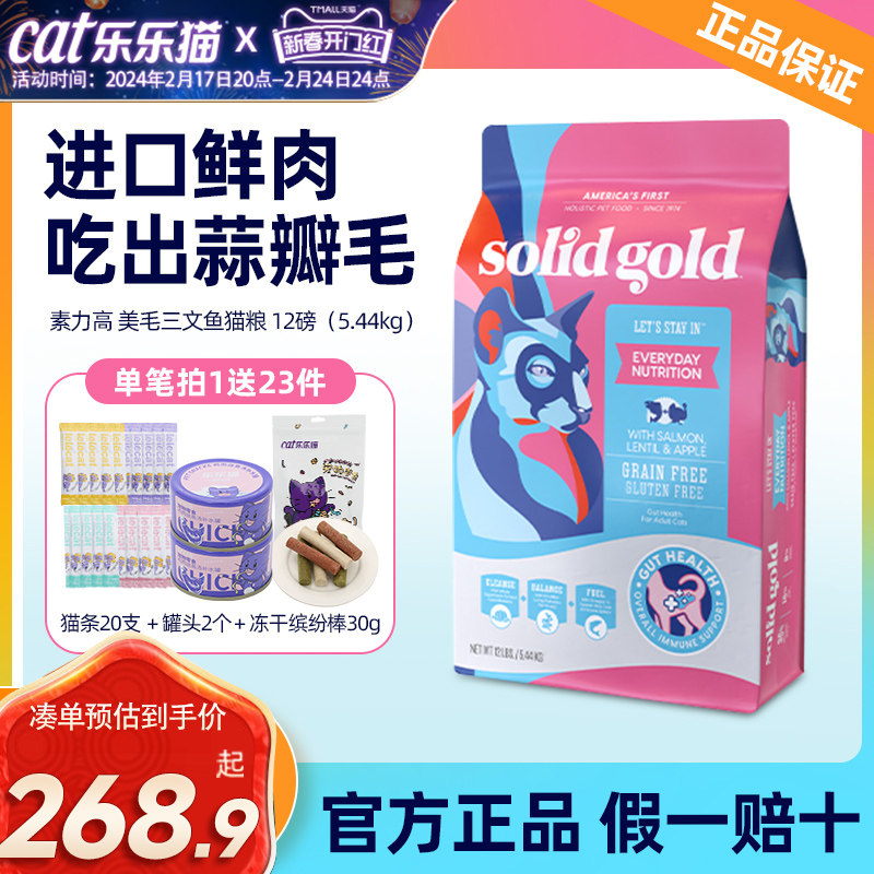 Solid Gold素力高进口鲜肉营养美毛版三文鱼味猫粮12磅/5.44kg