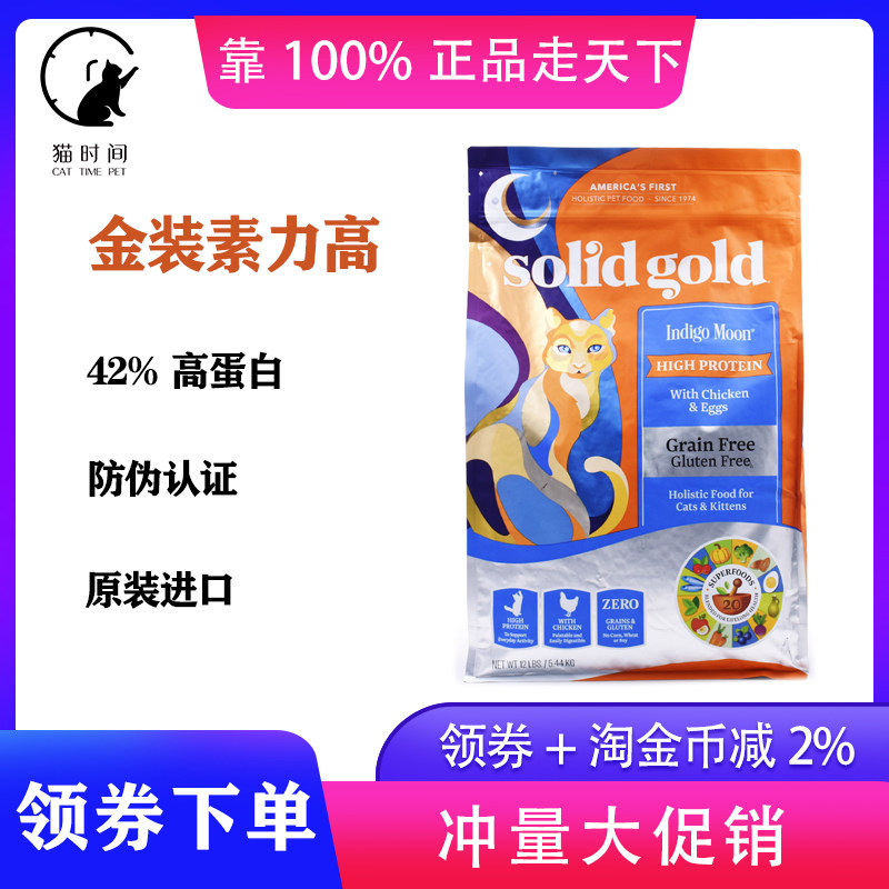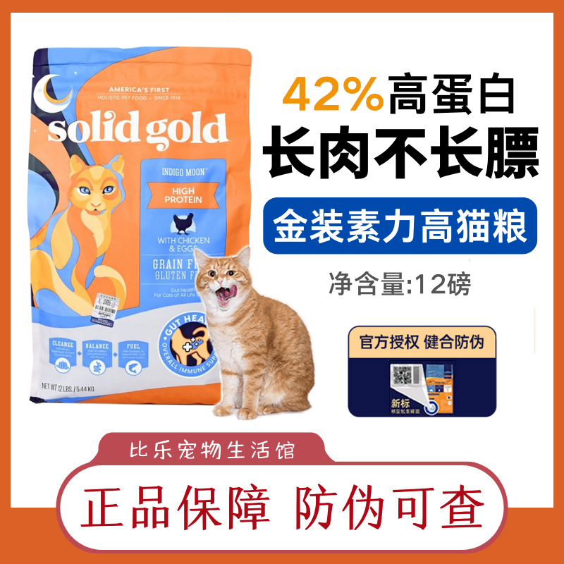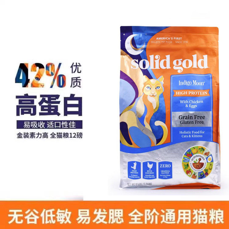 SolidGold金素猫粮金装英短美短大包装素力高无谷物12磅蓝白通用