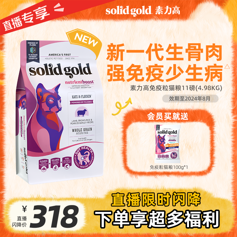 【自营】【临期】24.04Solid Gold/素力高免疫粒双拼猫粮成猫11磅