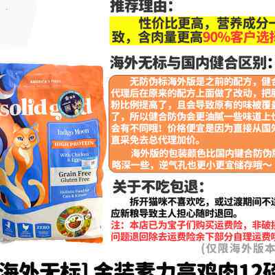 SolidGold金素力高金素猫粮幼猫成猫高蛋白鸡肉味进口猫粮