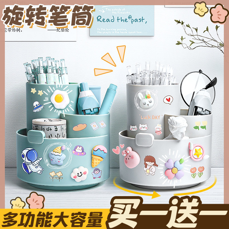 旋转笔筒大容量桌面文具收纳盒男孩女孩笔桶儿童书桌整理文具办公用品摆件化妆刷架子ins轻奢风高颜值多功能