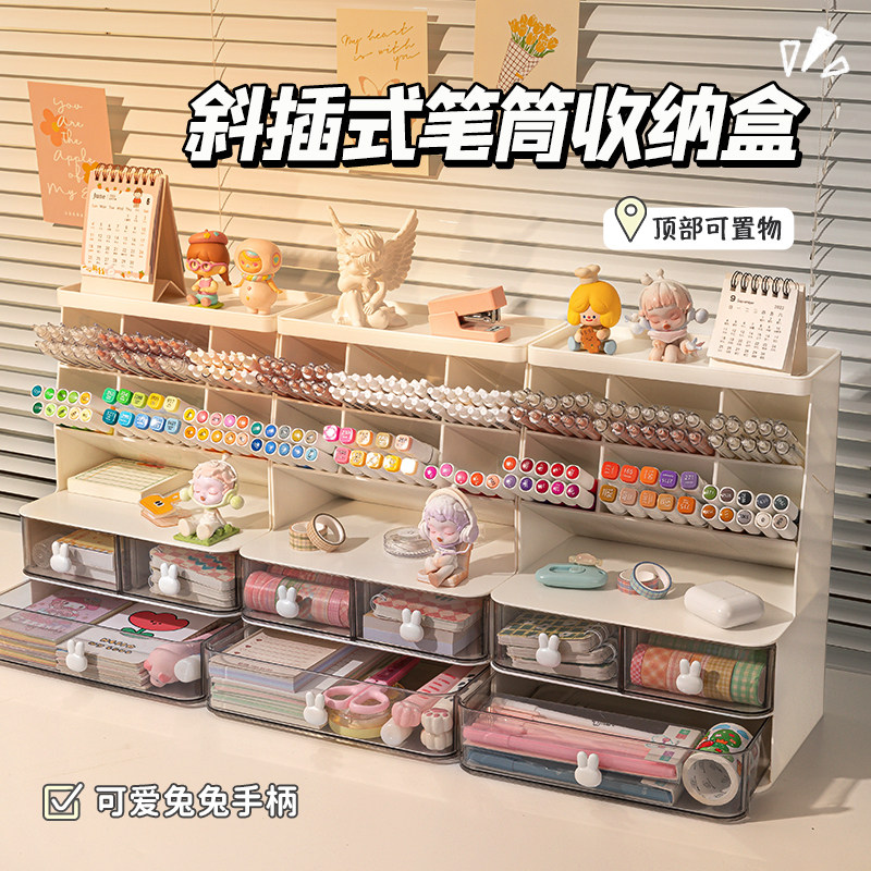斜插式笔筒收纳盒儿童女孩男孩小学生创意文具多功能大容量铅笔桶笔盒马克笔架学习用品办公室桌面书桌置物架