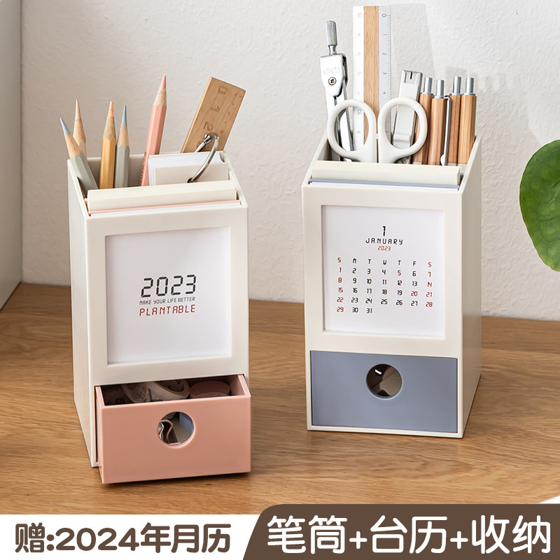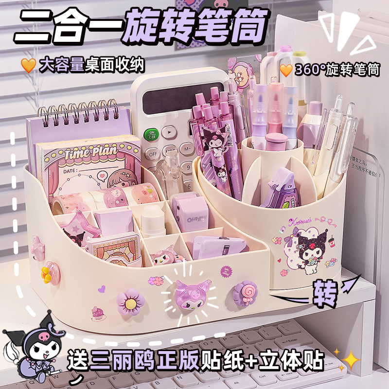 旋转笔筒收纳盒轻奢高级感学生桌面多功能大容量办公室好物儿童男孩女孩书桌一体可爱文具置物架笔桶360°