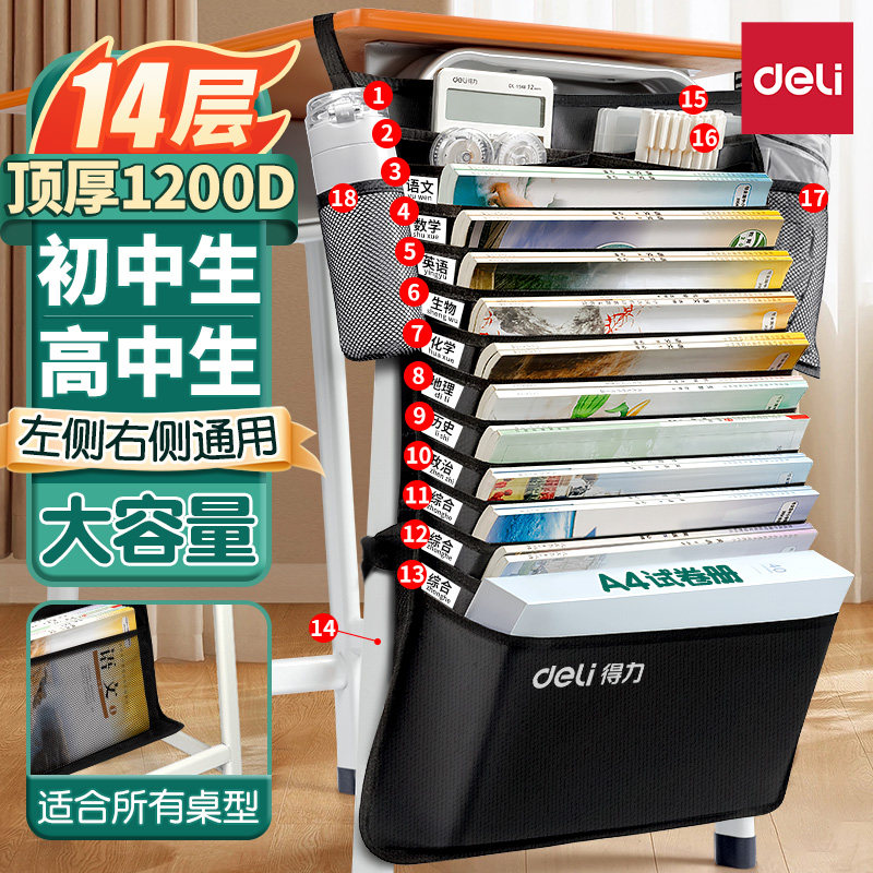 得力大容量课桌收纳袋挂袋初中生挂书袋侧学生书本书袋课桌神器高中生书桌书挂多功能书立放书袋子桌边带定制