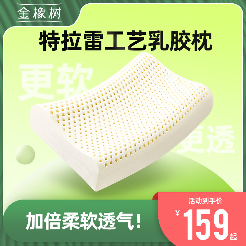 【达人推荐】金橡树泰国进口乳胶枕头高低枕中凹枕 柔软舒适