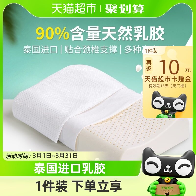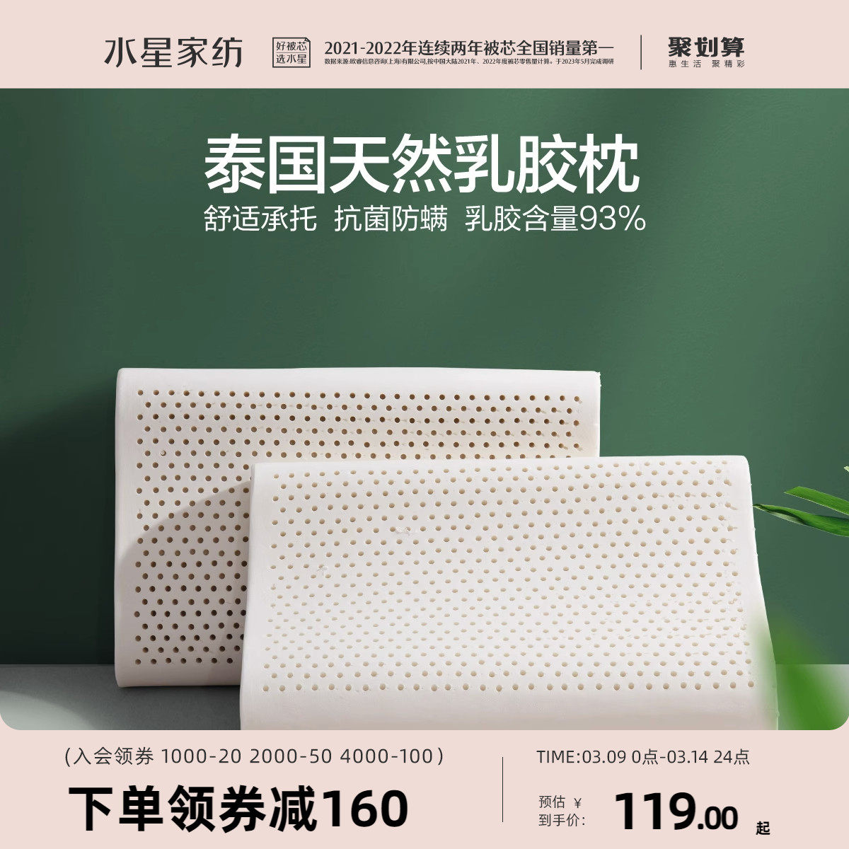 水星家纺乳胶枕头泰国进口正品成人呵护颈椎家用睡眠宿舍橡胶枕芯