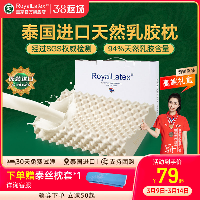 ROYAL KING泰国原装进口天然乳胶枕颈椎单人枕芯成人家用睡眠枕头