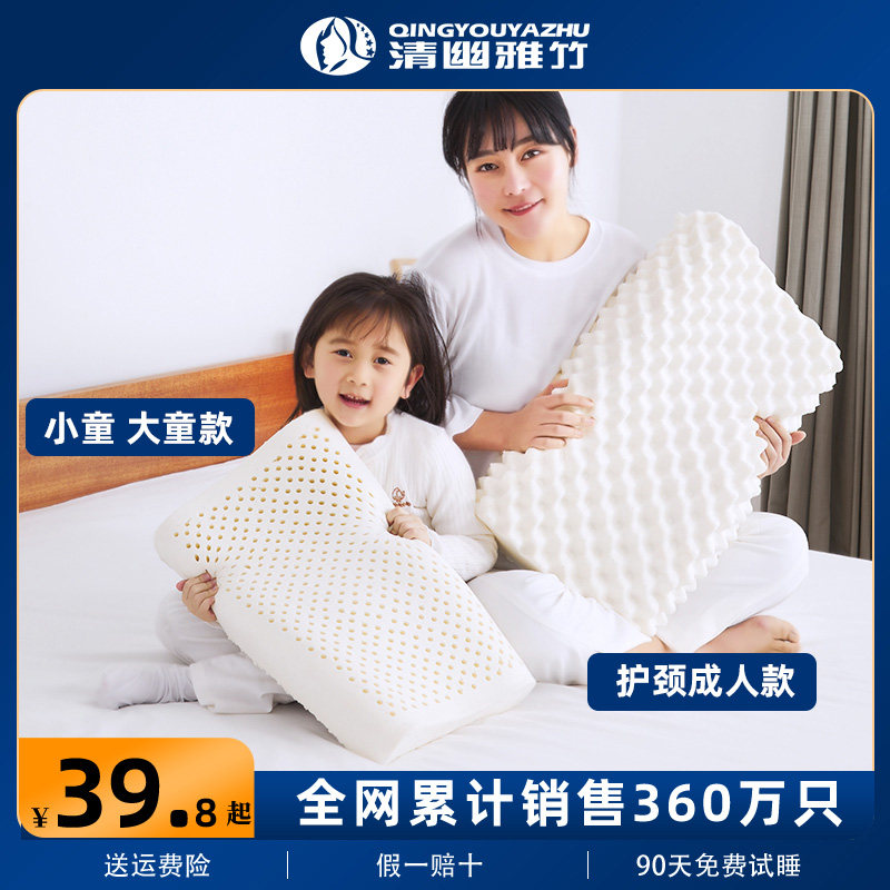 泰国天然乳胶枕头一对家用护颈椎助睡眠儿童低枕芯记忆枕加厚成人