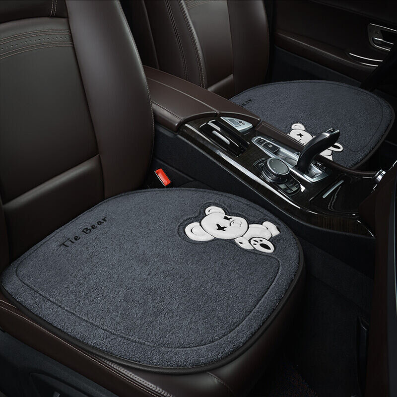 紫风铃加厚羊羔绒汽车坐垫冬季卡通汽车座垫三件套办公室椅垫朗逸