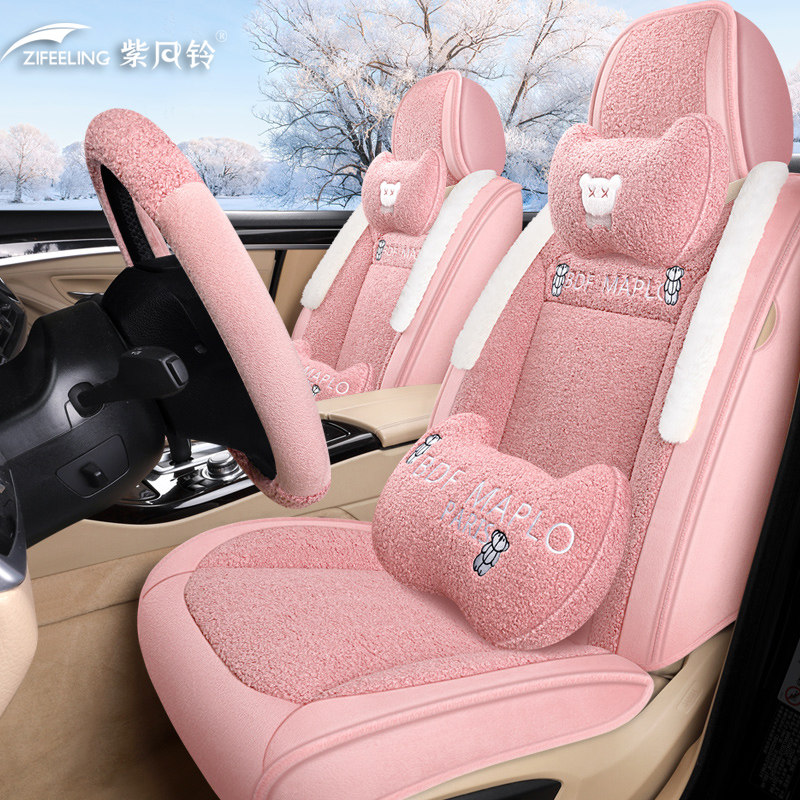 紫风铃新款全包围汽车坐垫秋冬季短毛绒全包棉垫男女座垫网红座套
