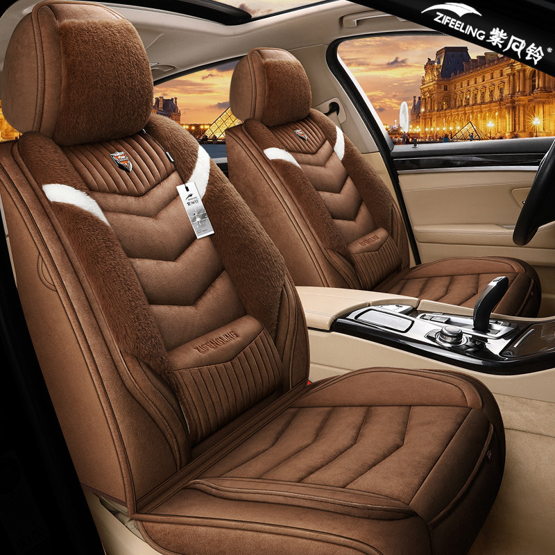 紫风铃新款全包围汽车坐垫秋冬季短毛绒全包棉垫座垫四季通用座套