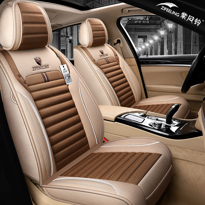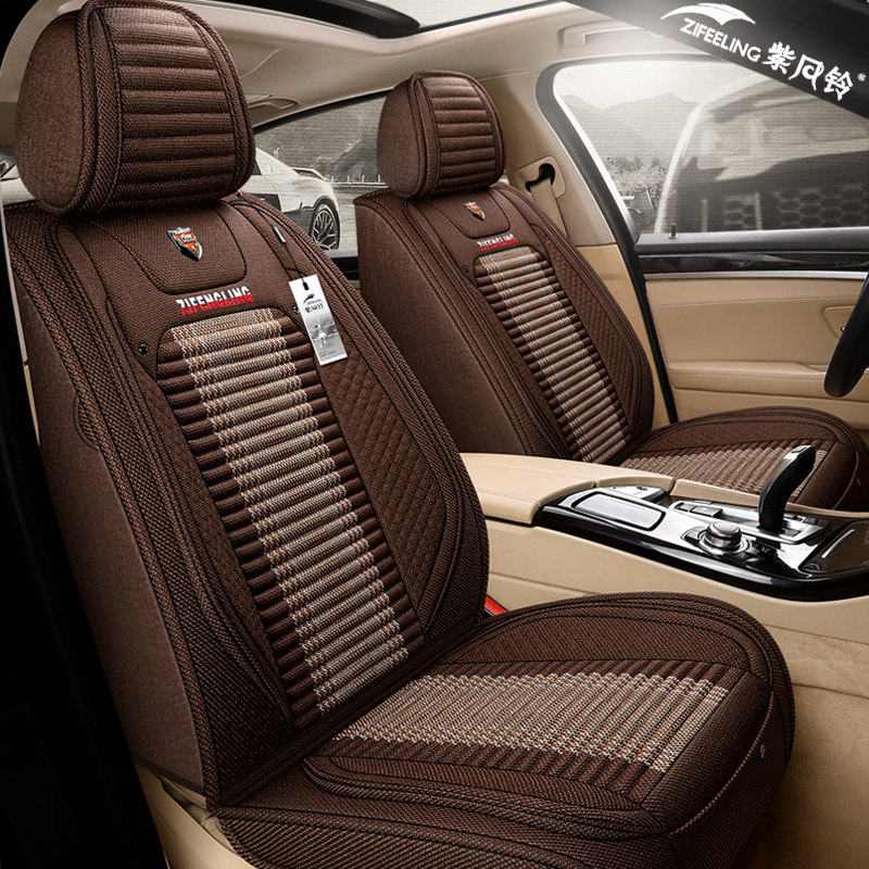 紫风铃新款亚麻全包围汽车坐垫四季通用荞麦全包座垫座套小车坐垫