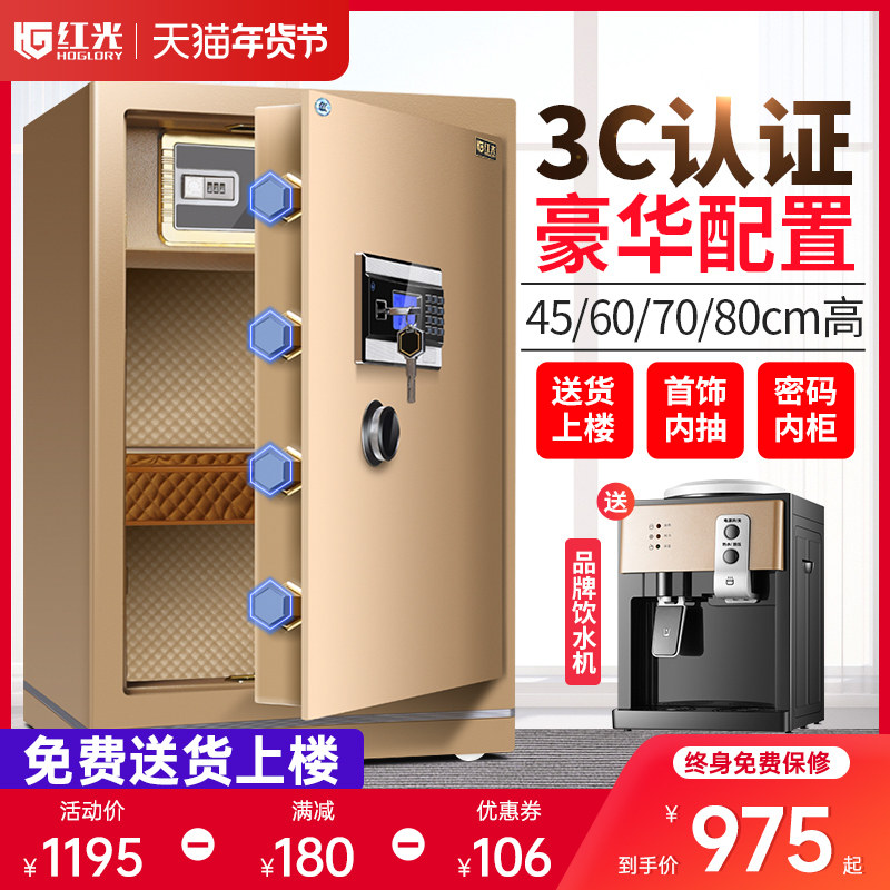 新品红光保险柜家用办公小型45/60/70/80指纹密码保险箱大型防盗全钢保管箱床头入墙嵌入送上楼终身免费保修