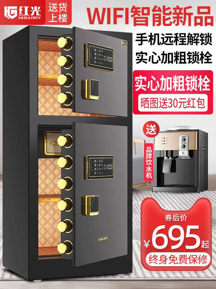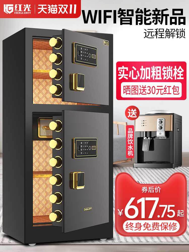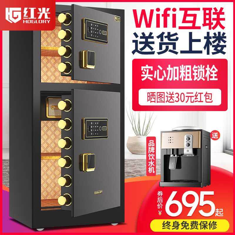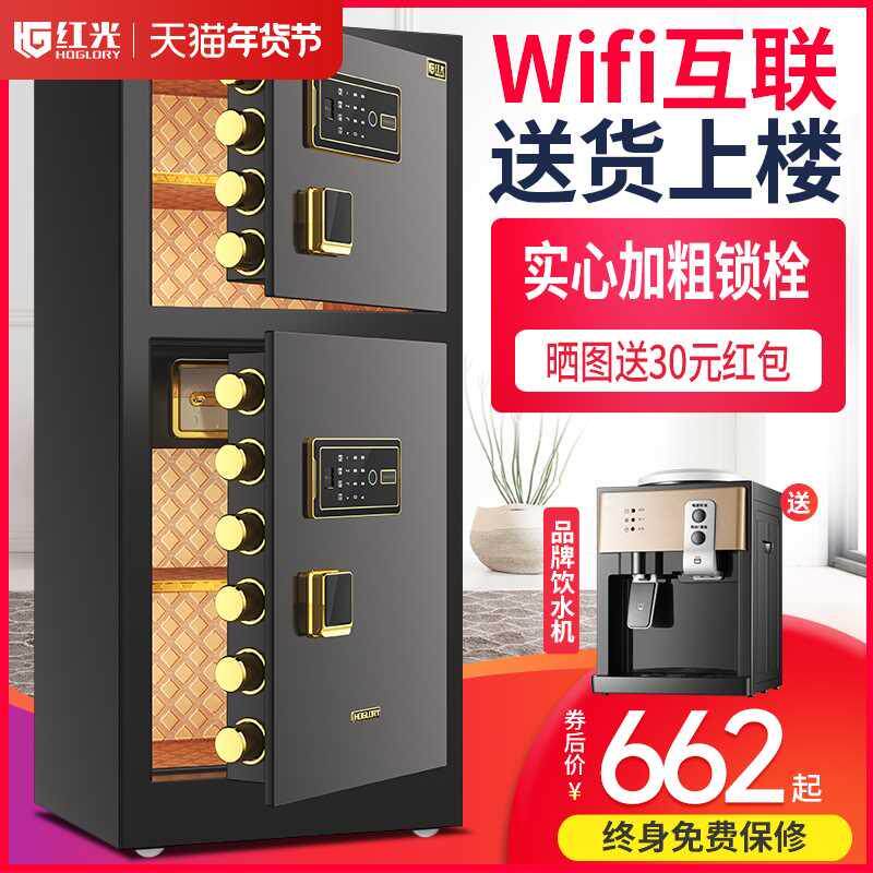 红光保险柜办公大型商用防盗全钢wifi指纹密码送货上楼床头柜新款80cm1米1.2m1.5m1.8双门保险箱家用保管箱柜