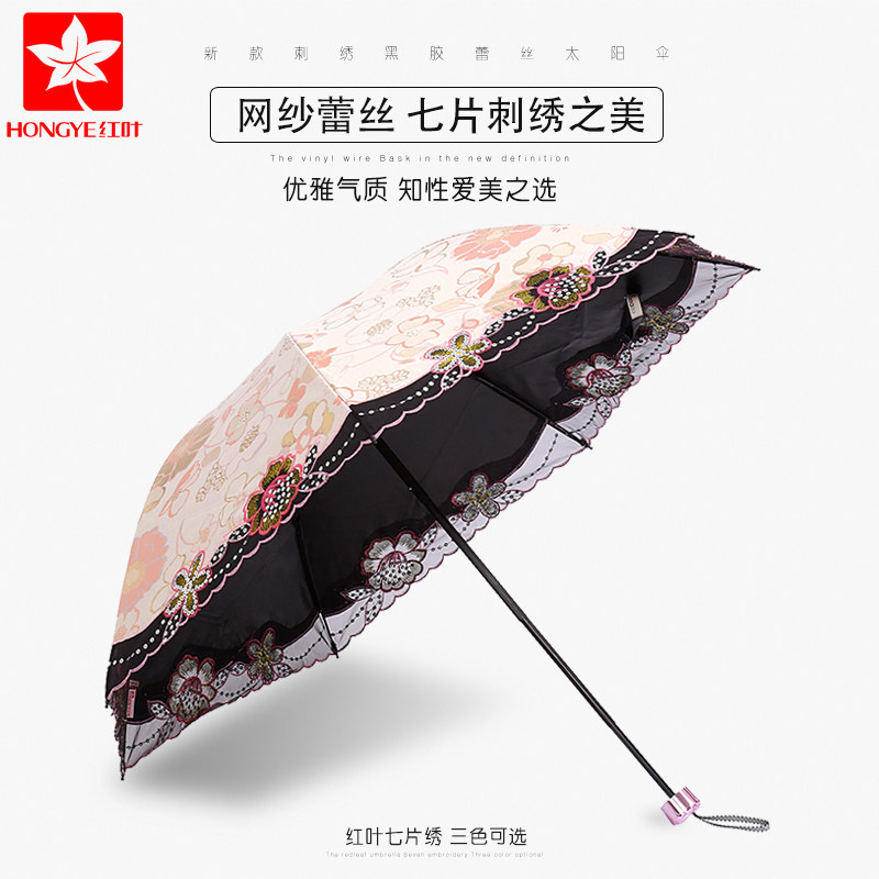 红叶伞蕾丝刺绣太阳伞女防晒防紫外线遮阳伞创意折叠公主黑胶伞