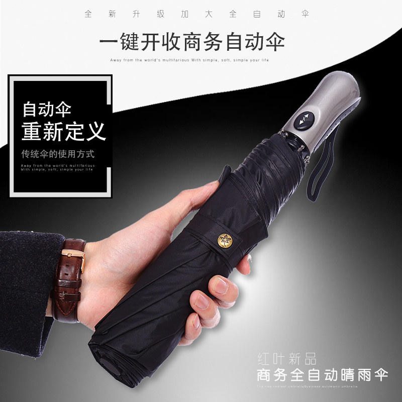 红叶雨伞三折伞防紫外线全自动10骨加大遮阳伞晴雨伞工厂