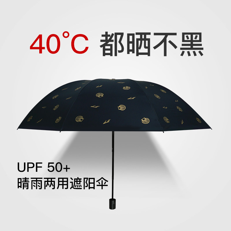 红叶(HongYe)遮阳伞三折叠防晒伞upf50+晴雨两用黑胶防紫外线太