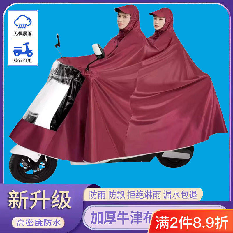 2021新款2人超大红叶雨披二轮电动电瓶车加大加厚摩托车雨衣双人
