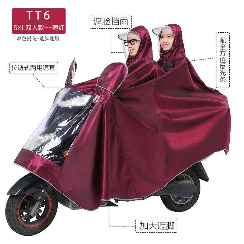 2人超大遮脚红叶雨披二轮电动车电瓶车用加大加厚摩托车雨衣双人