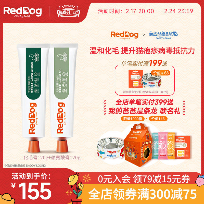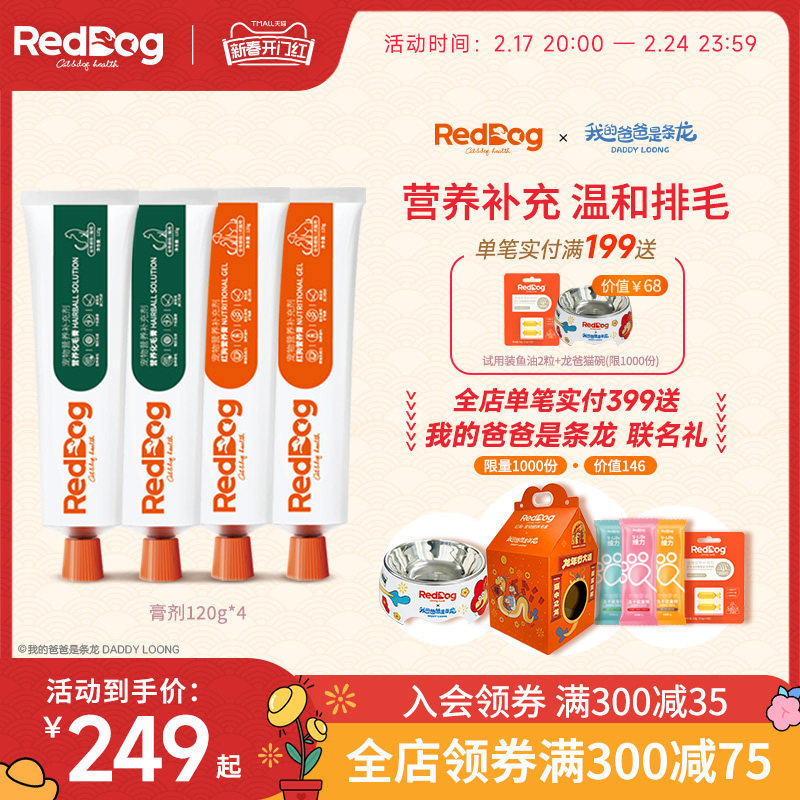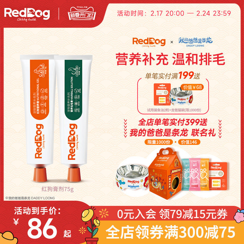 红狗reddog化毛膏营养膏猫狗宠物美毛赖氨酸补钙补充营养调理肠胃