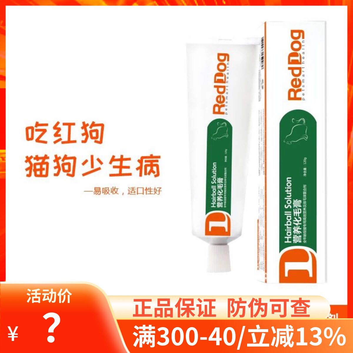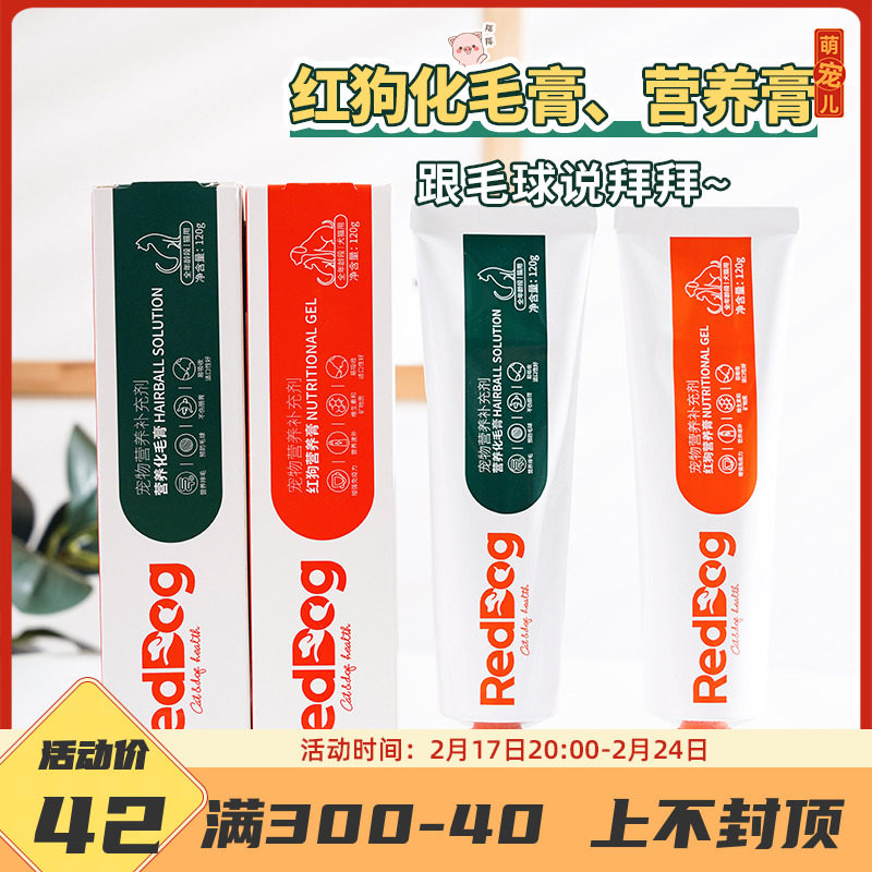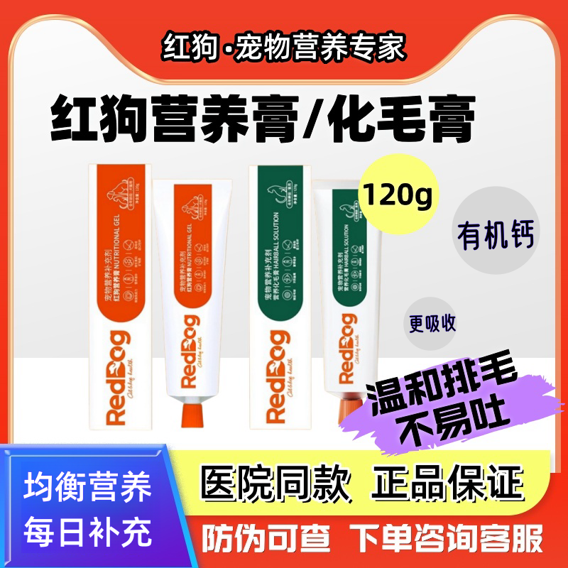 红狗化毛膏营养膏猫咪专用品成幼犬猫去毛球宠物化毛120g美毛补钙