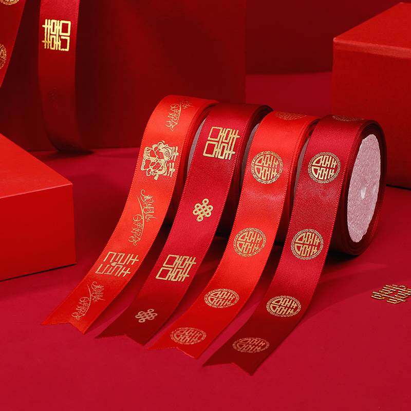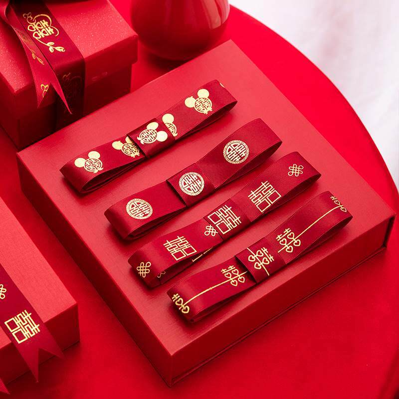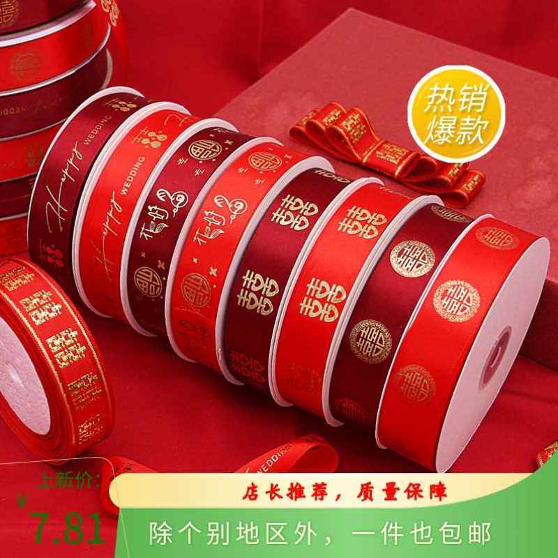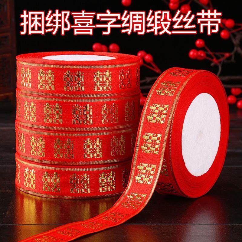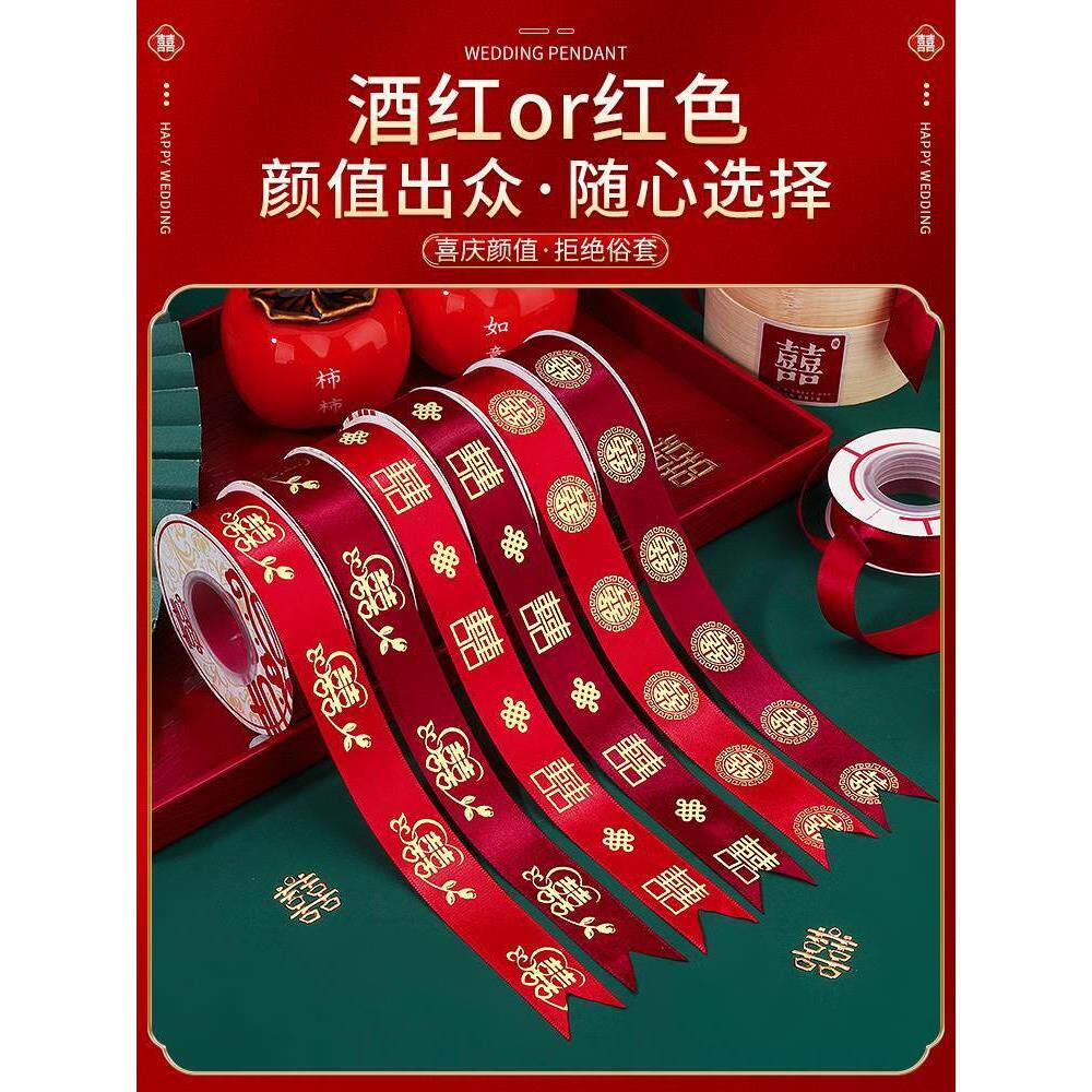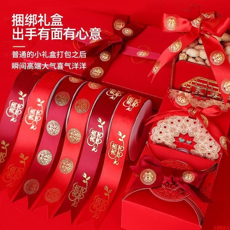 婚庆彩带喜字红丝带婚礼喜糖盒红绳子嫁妆绑带结婚礼品捆被子绸带