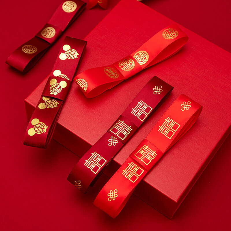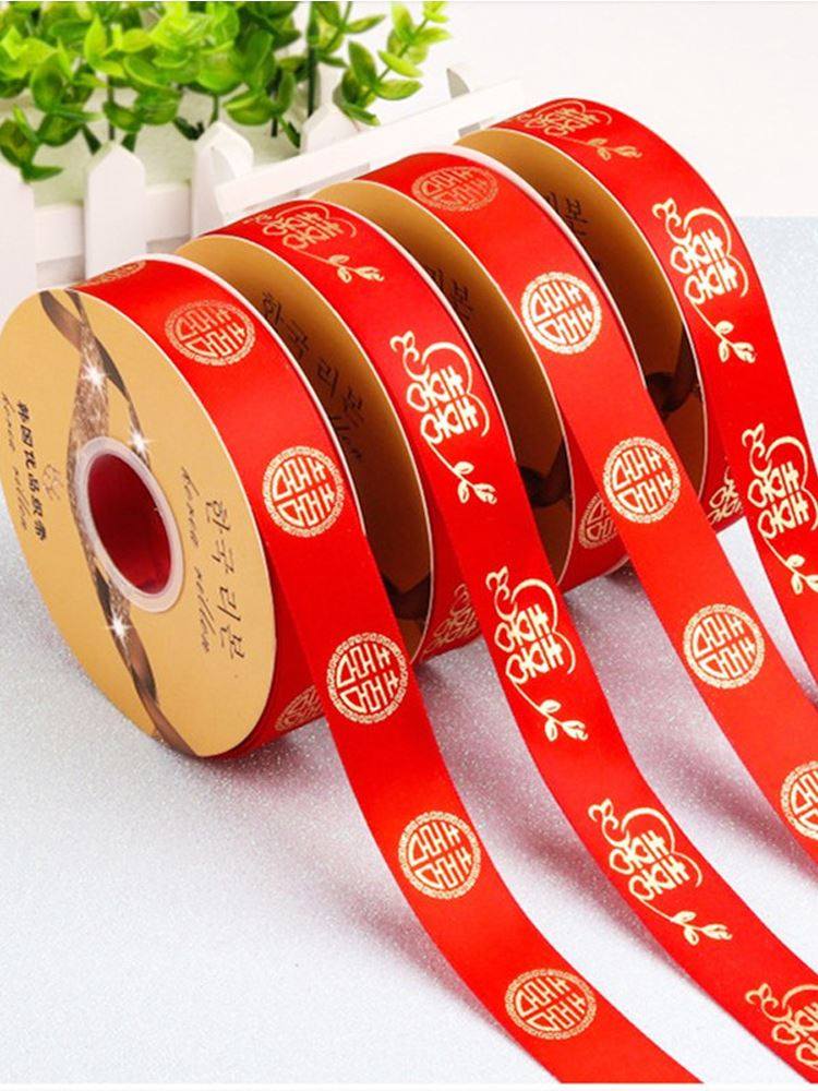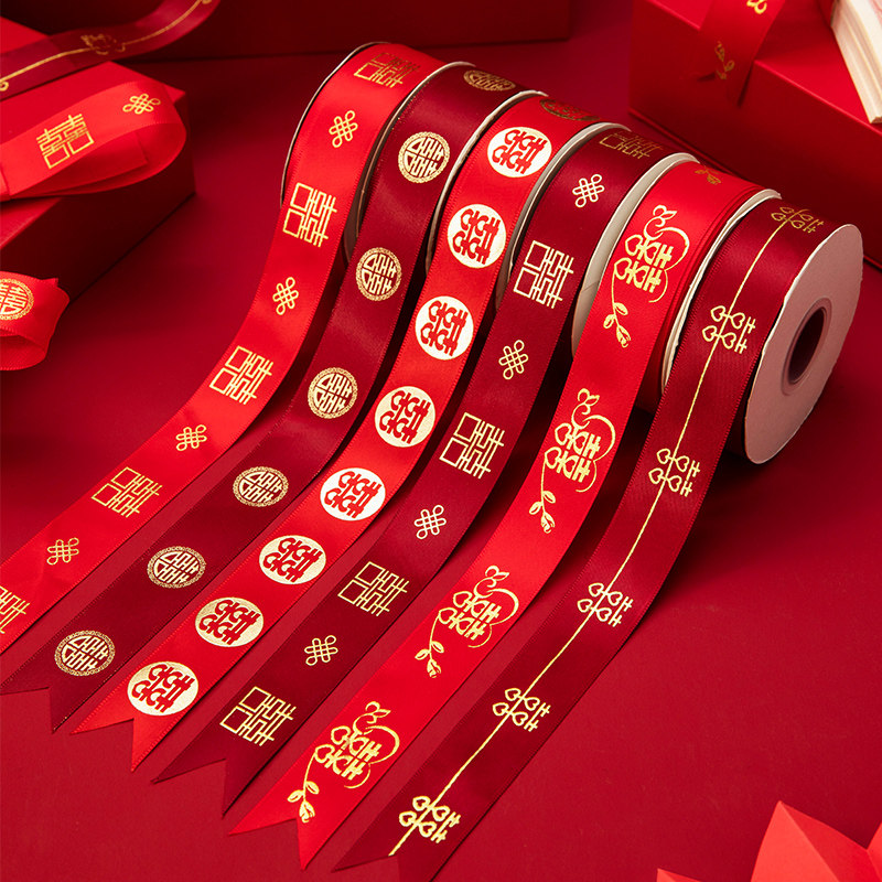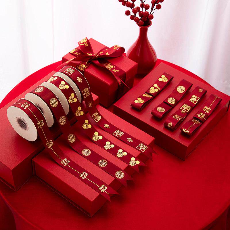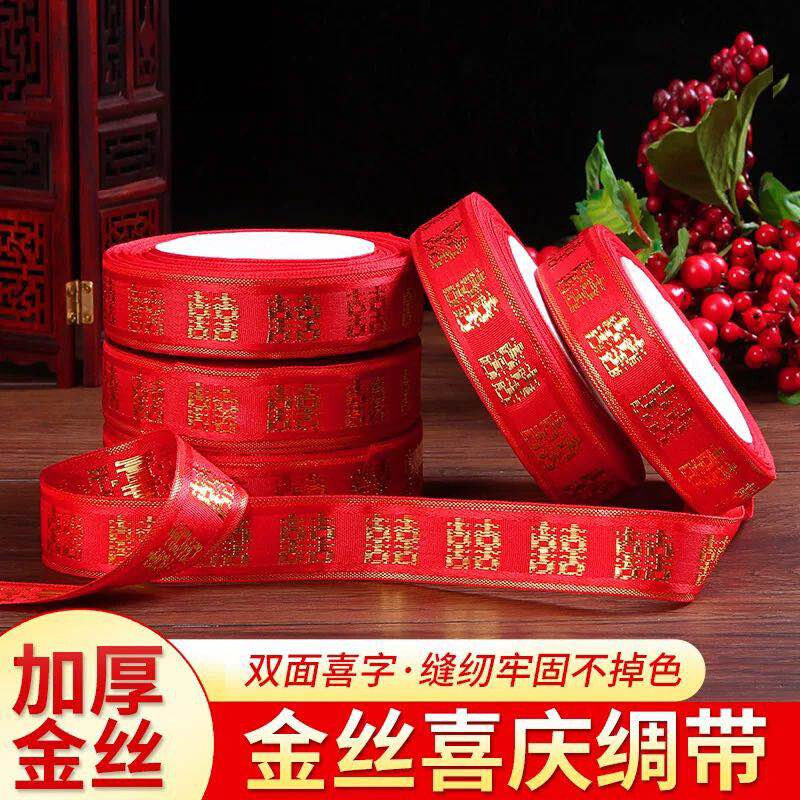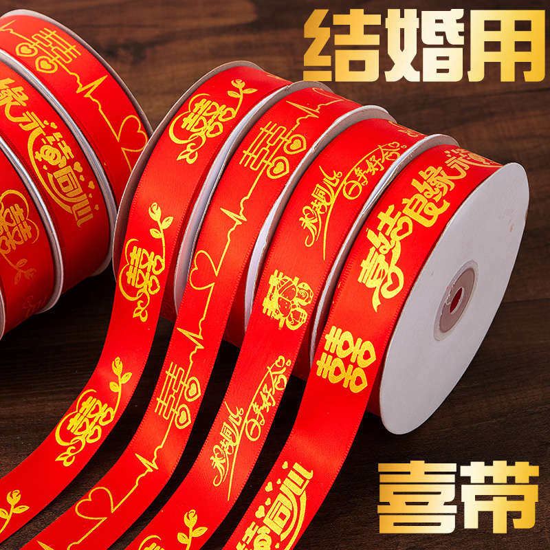 婚庆彩带喜字红丝带婚礼喜糖盒红绳子嫁妆绑带结婚礼品捆被子绸带