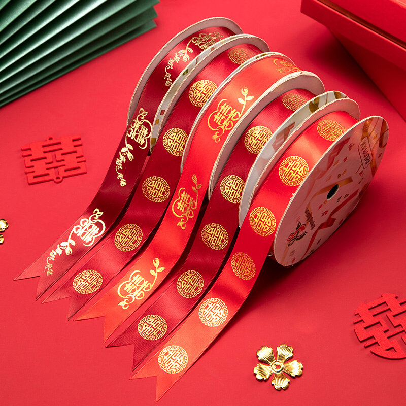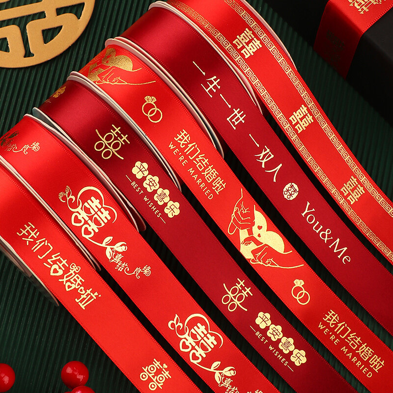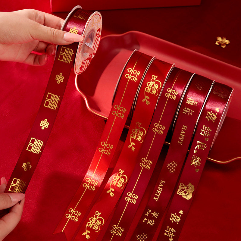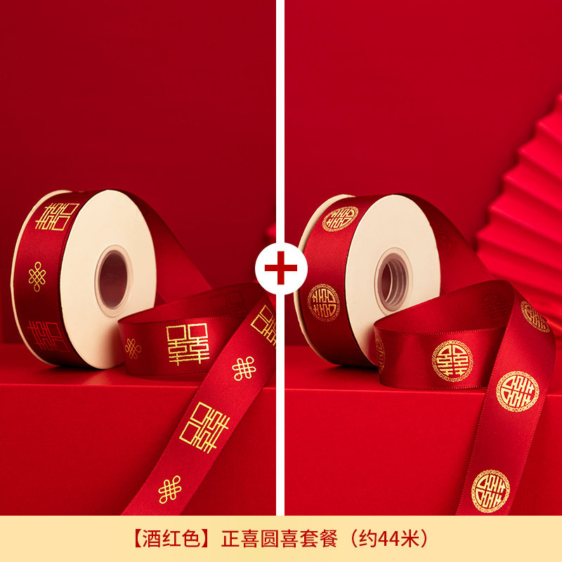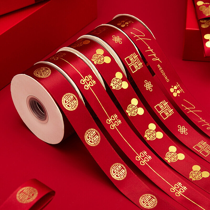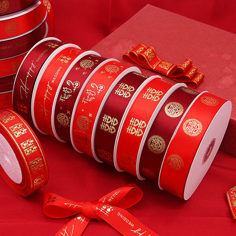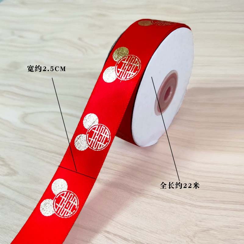 婚庆彩带喜字红丝带婚礼喜糖盒红绳子嫁妆绑带结婚礼品捆被子绸带