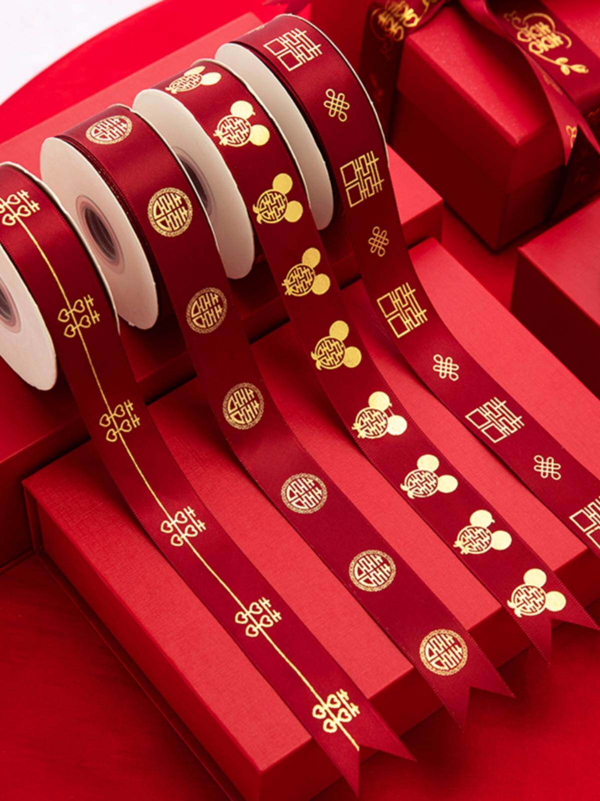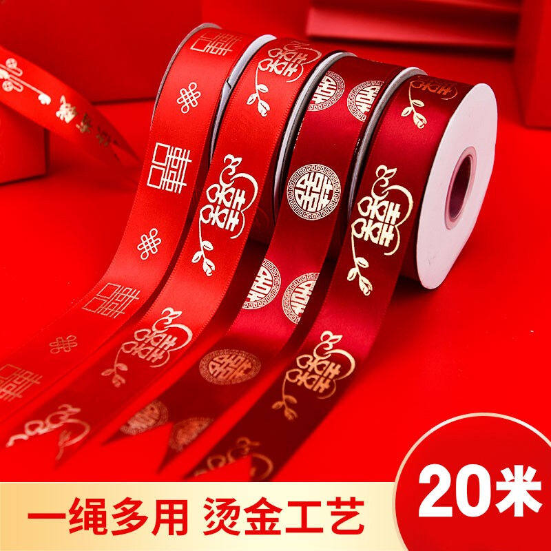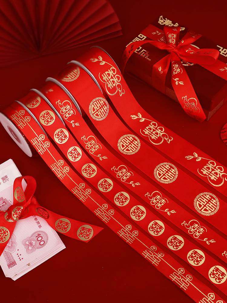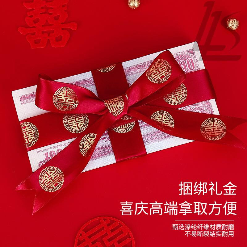 彩礼钱扎带喜字红绸带彩带捆绸带丝带红色婚礼新人绑被子的红绳子
