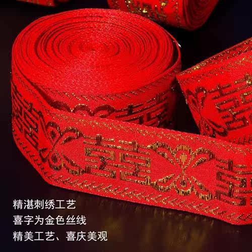 婚庆喜字绑带结婚用品新娘陪嫁嫁妆被子捆绑红绳子婚礼刺绣红丝带