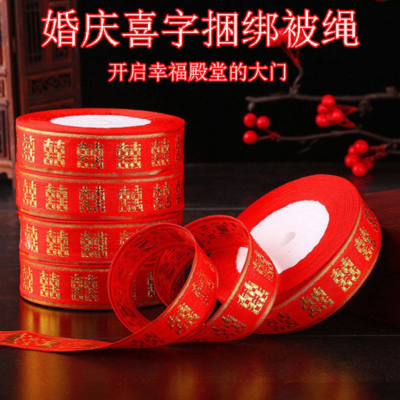 喜字绑带结婚用品新娘陪嫁嫁妆被子捆绑红绳子新人婚礼刺绣红丝