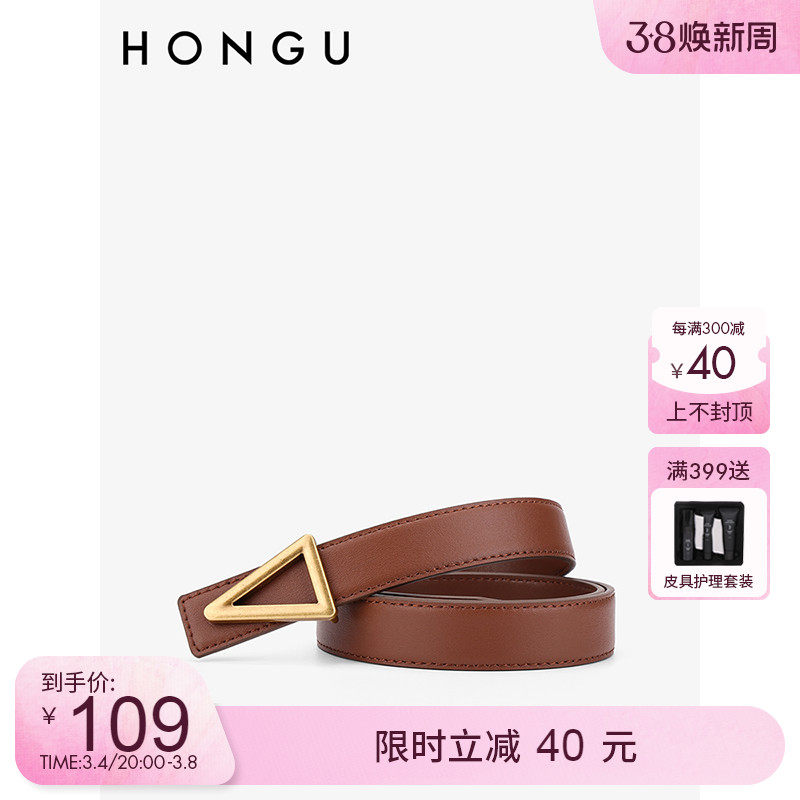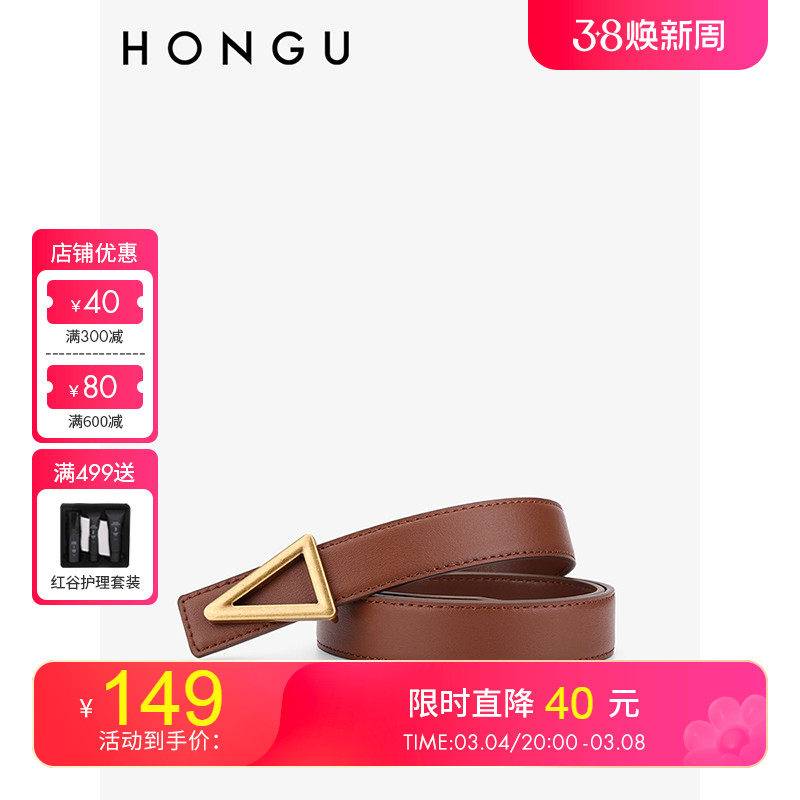 红谷女士皮带2023新款真皮休闲牛仔裤腰带女针扣皮带H2665301