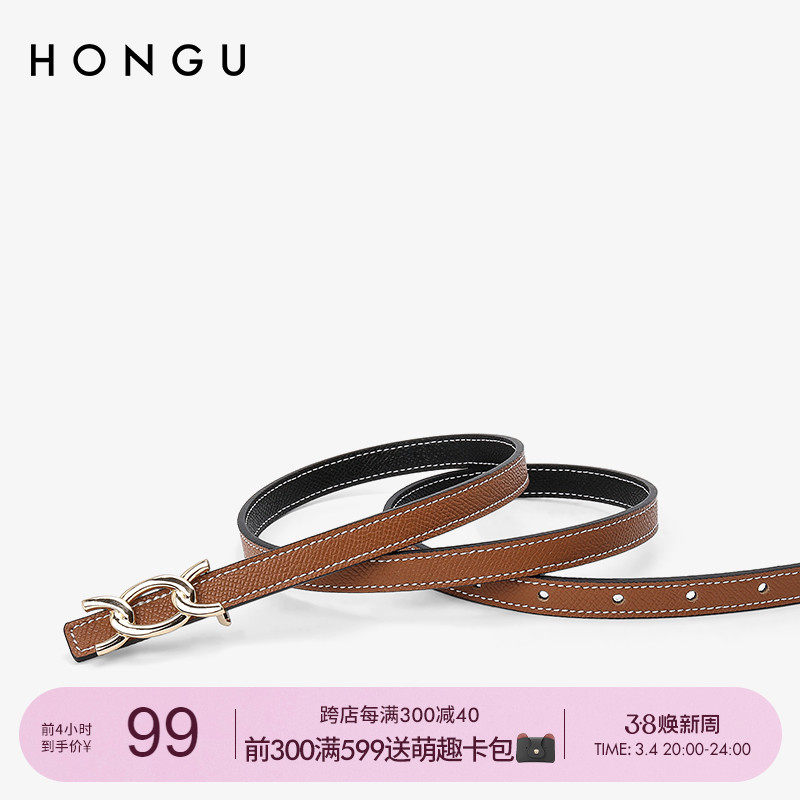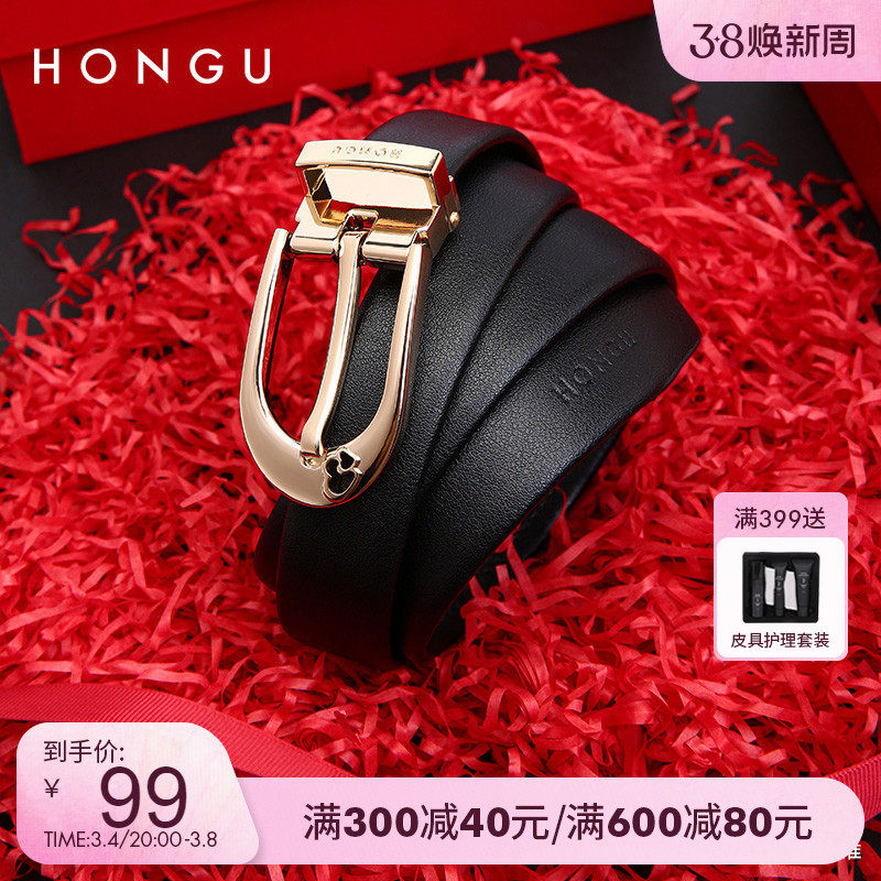 红谷新款个性女士牛皮小皮带正品休闲牛仔裤腰带时尚百搭裤带装饰