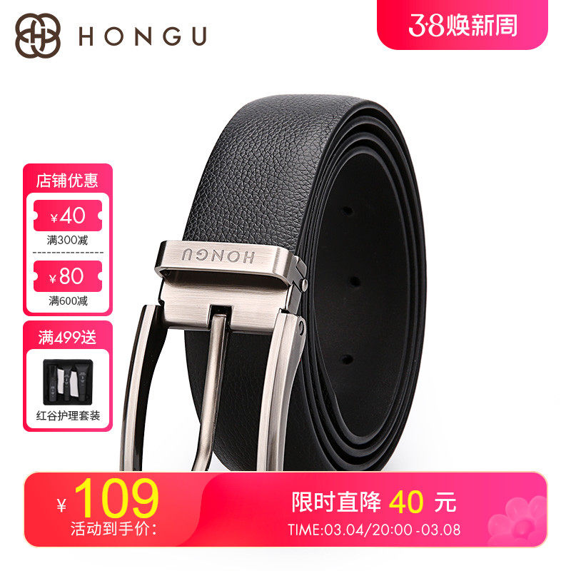 红谷针扣皮带男士商务休闲牛皮中青年腰带男真皮时尚潮款牛仔裤带