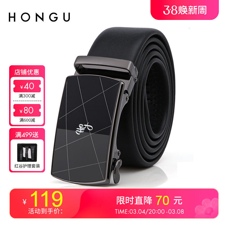 红谷皮带男 商务休闲头层牛皮腰带 自动扣青年裤带正装裤腰带潮牌