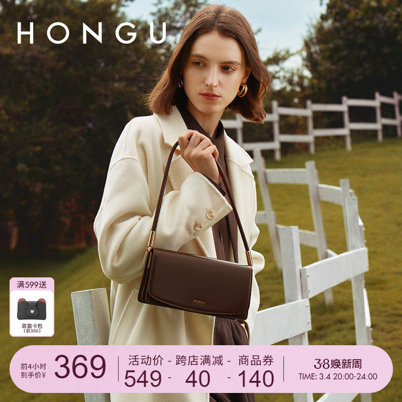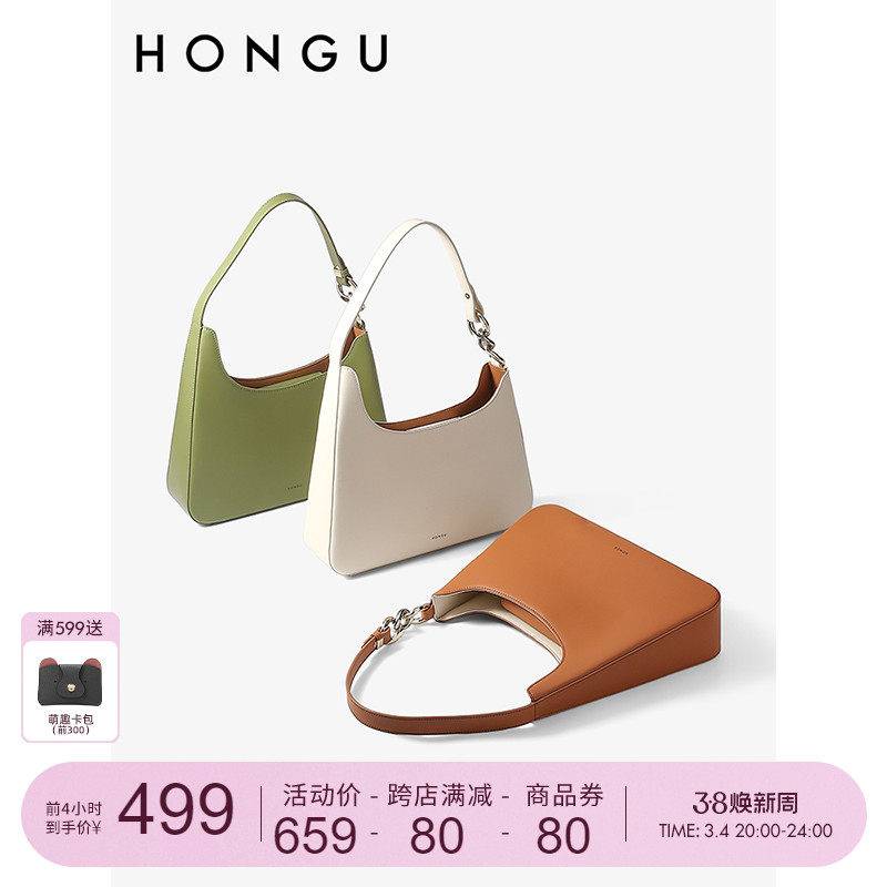 红谷包包2023新款流行牛皮单肩手提包小众设计高级感腋下包女士包