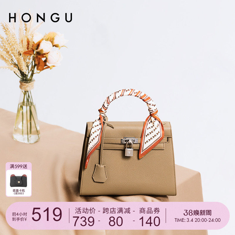 红谷包包2023新款牛皮单肩手提包时尚气质丝巾凯莉包女士包