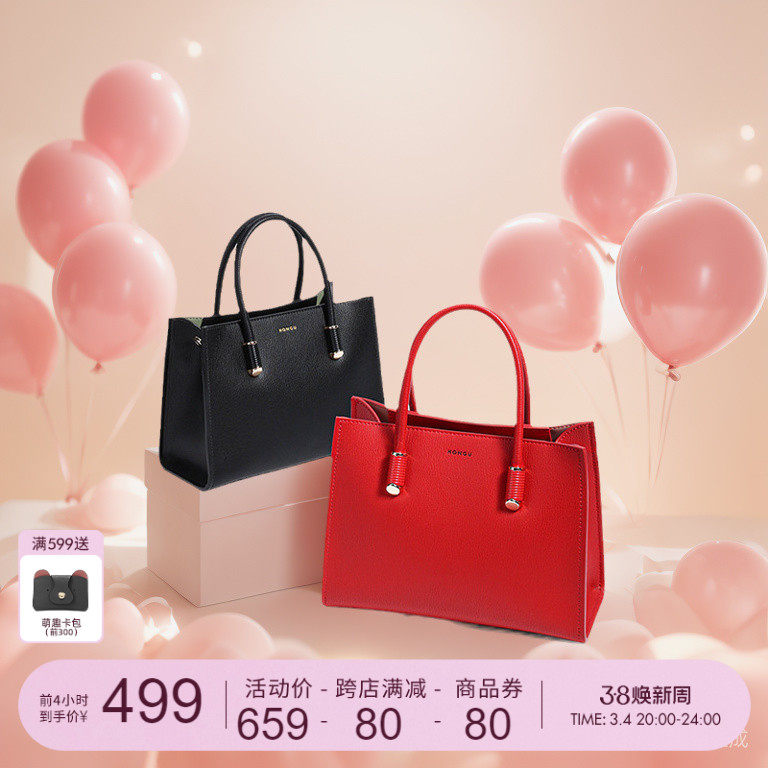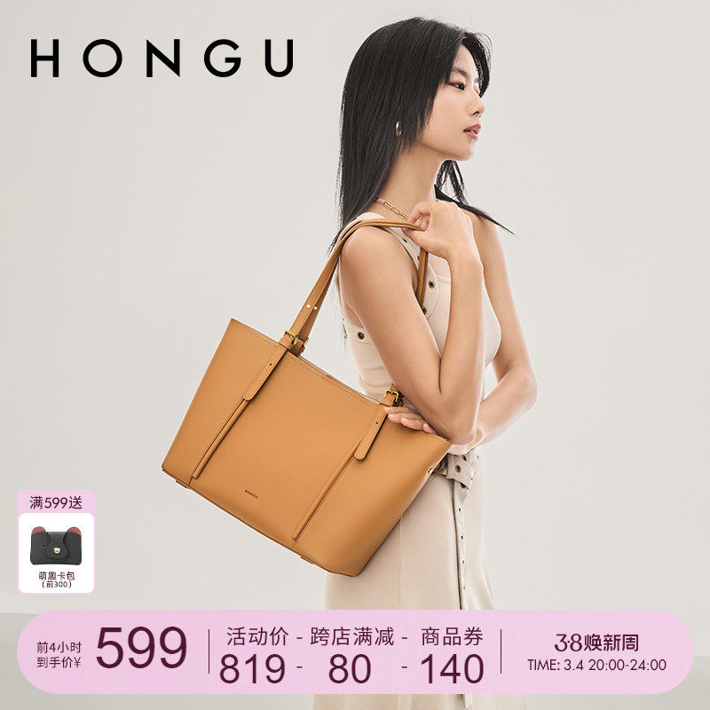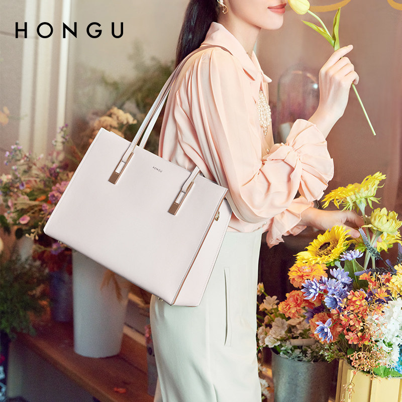 红谷包包2023新款通勤牛皮单肩手提包时尚百搭大容量托特包女士包