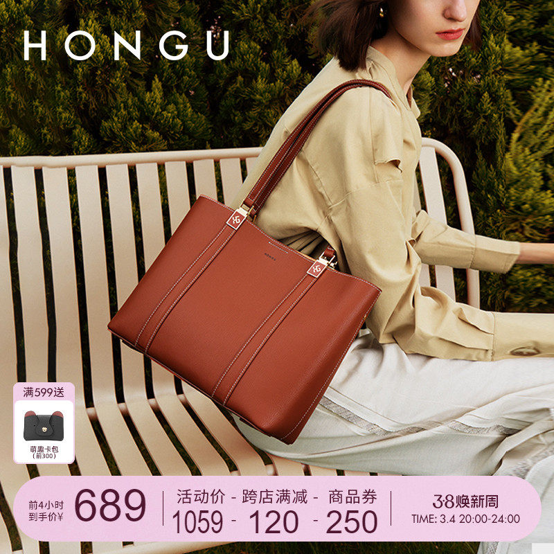 红谷包包女新款秋冬牛皮单肩手提包上班通勤大容量托特包女士包