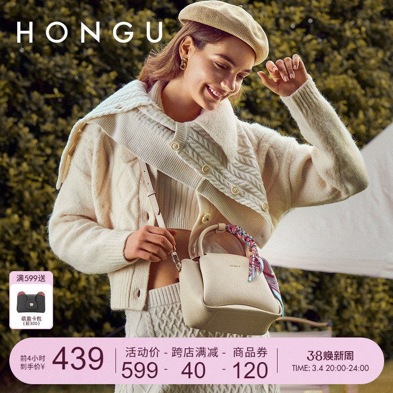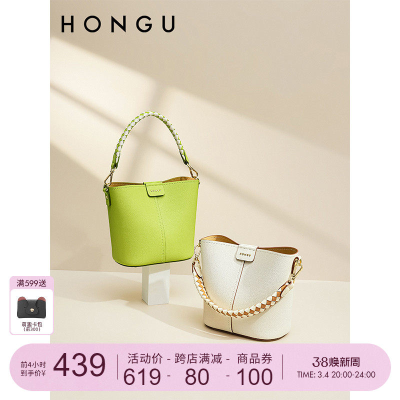 红谷包包2023新款牛皮时尚单肩水桶包百搭大容量斜挎手提包女士包