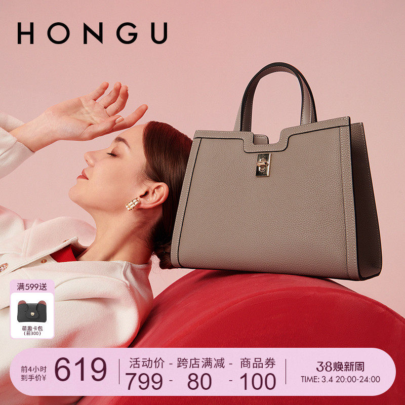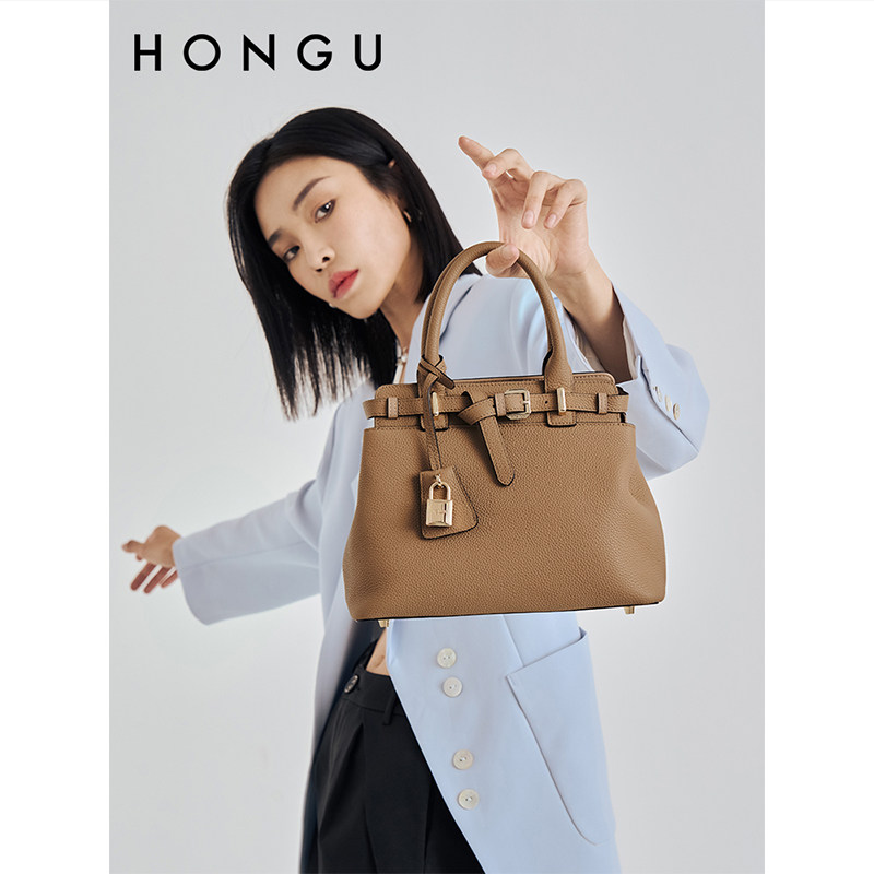红谷包包新款质感真皮单肩手拎包时尚轻奢大容量手提包牛皮女士包