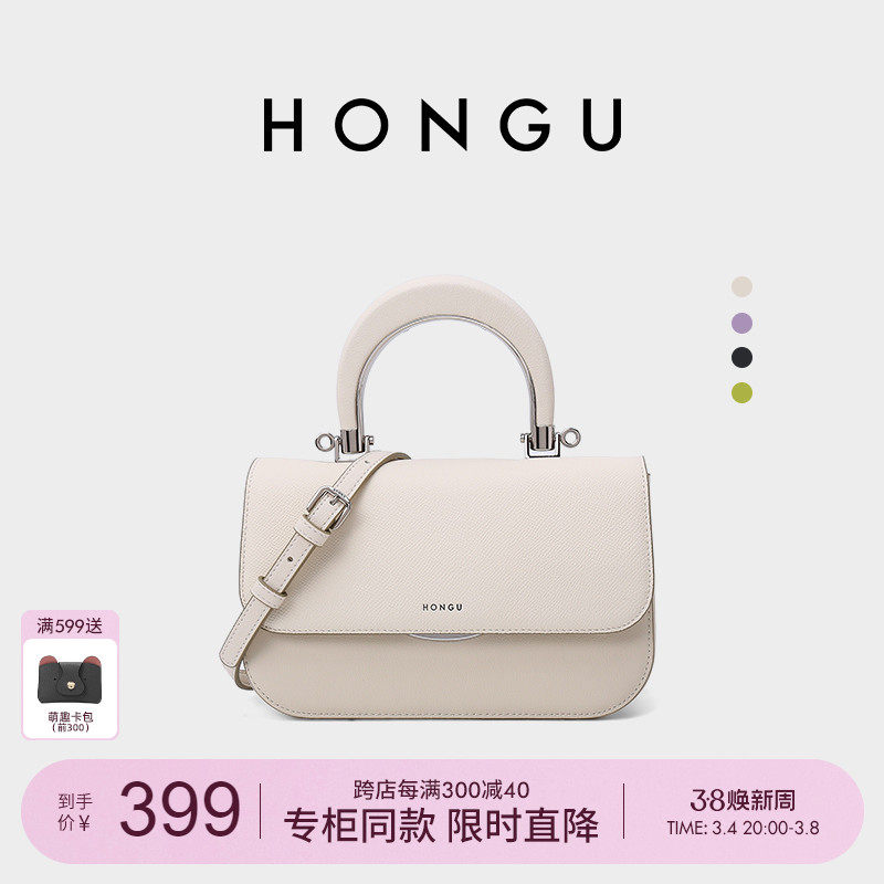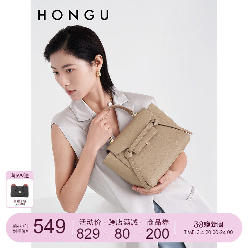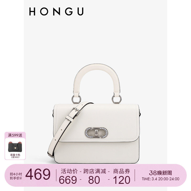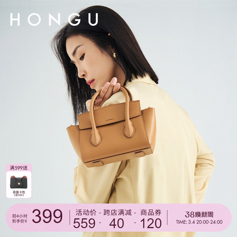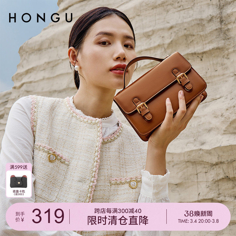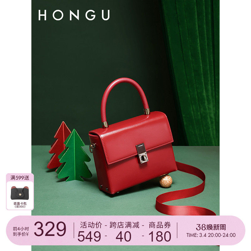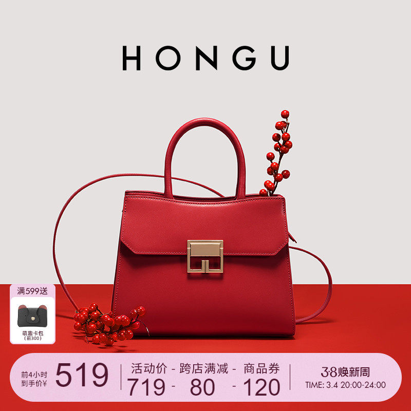 红谷包包2023新款牛皮单肩手提包简约休闲斜挎小方包高级感女士包